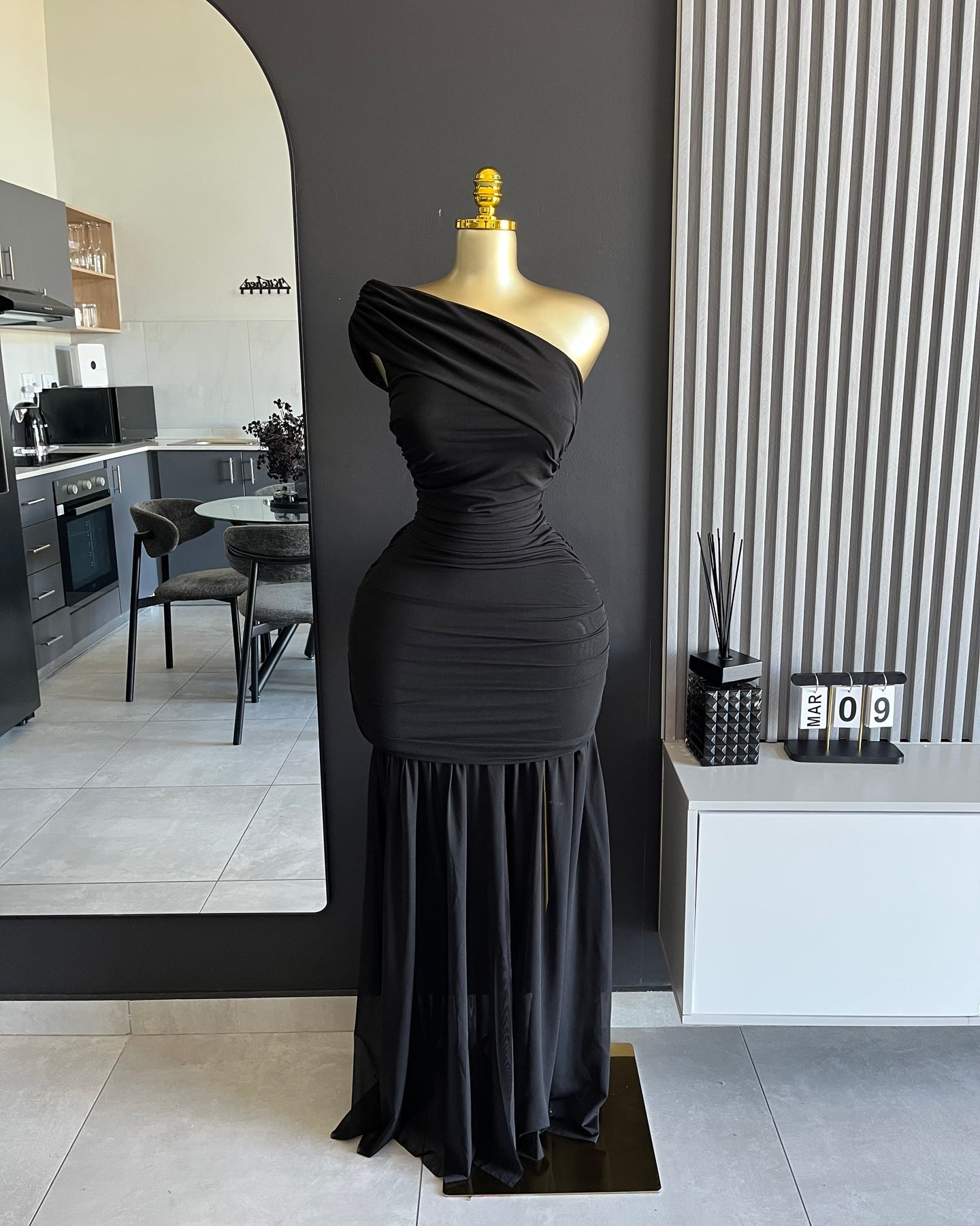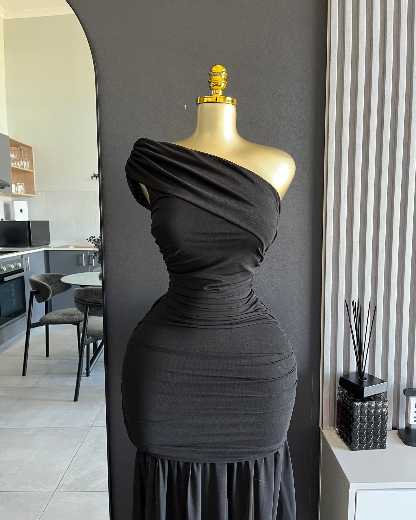 The Kendall One-Shoulder Ruched Maxi Dress is elegant, sculpting, and timeless. Designed with a flattering asymmetrical neckline and waist-cinching ruching, this statement maxi flows into a soft draped hem for a graceful finish. Perfect for weddings, formal events, luxury dinners, and special occasions.