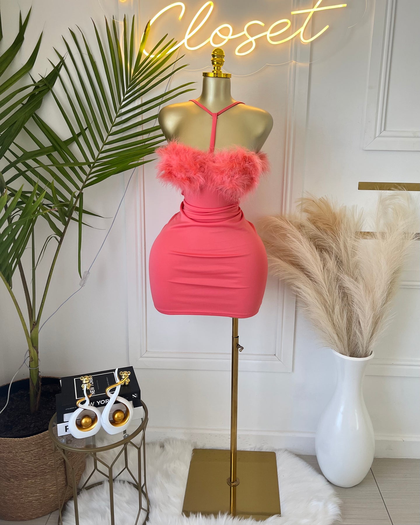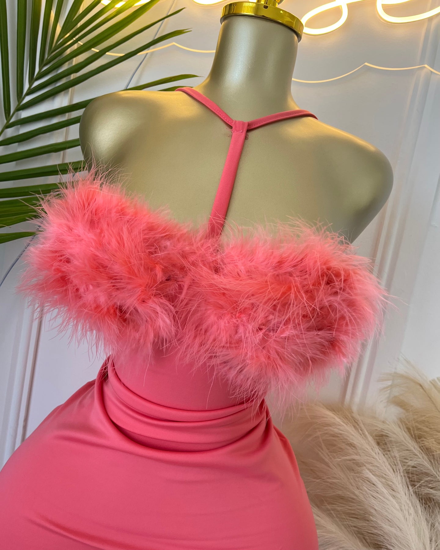 Feel like the queen of the party in our Queen Dress! Featuring a halter neck and feather tube top, this bandage dress will slim your figure and cover your hips for a stylish and flattering look. Perfect for any party or banquet, this dress will bring out your inner fashionista.