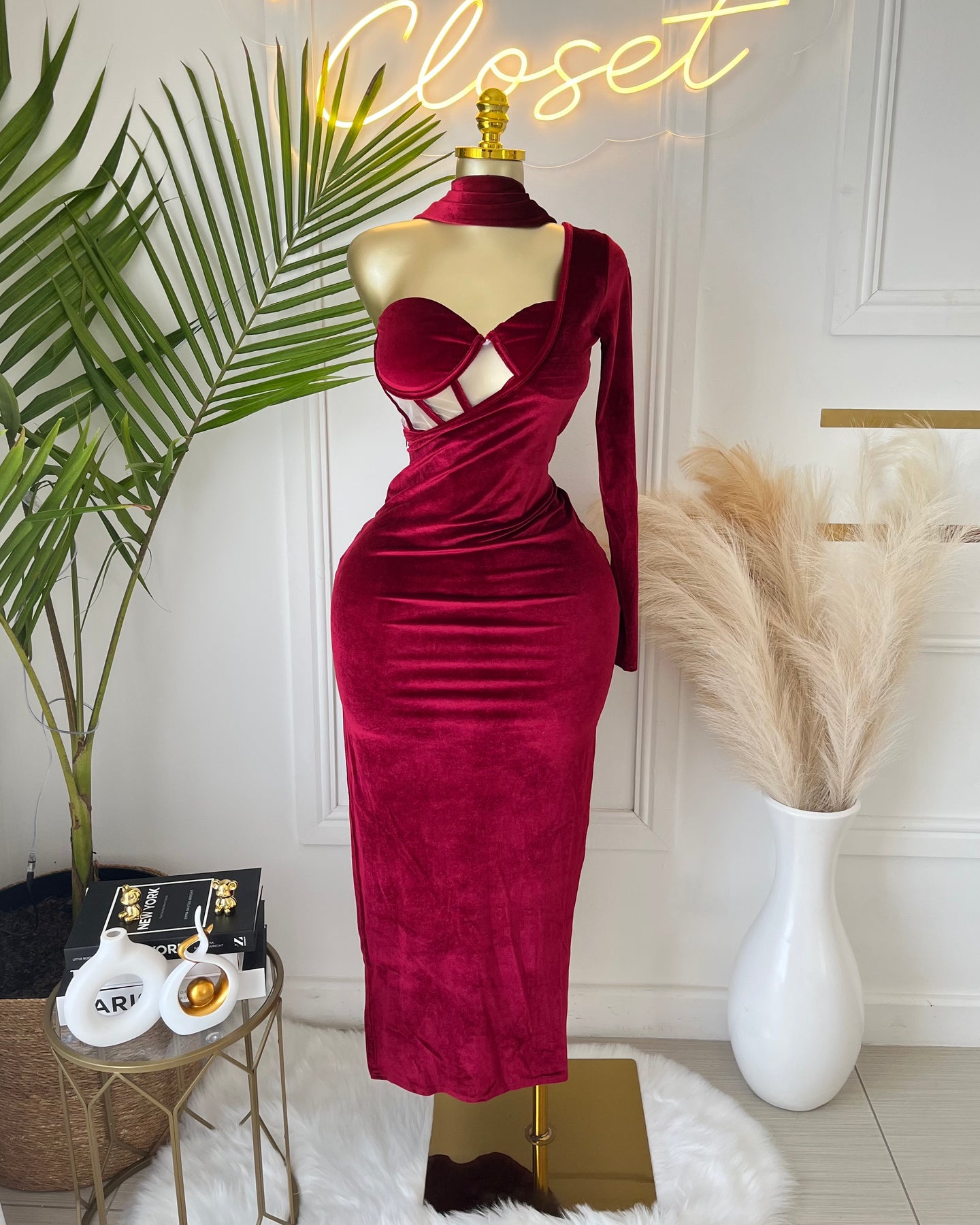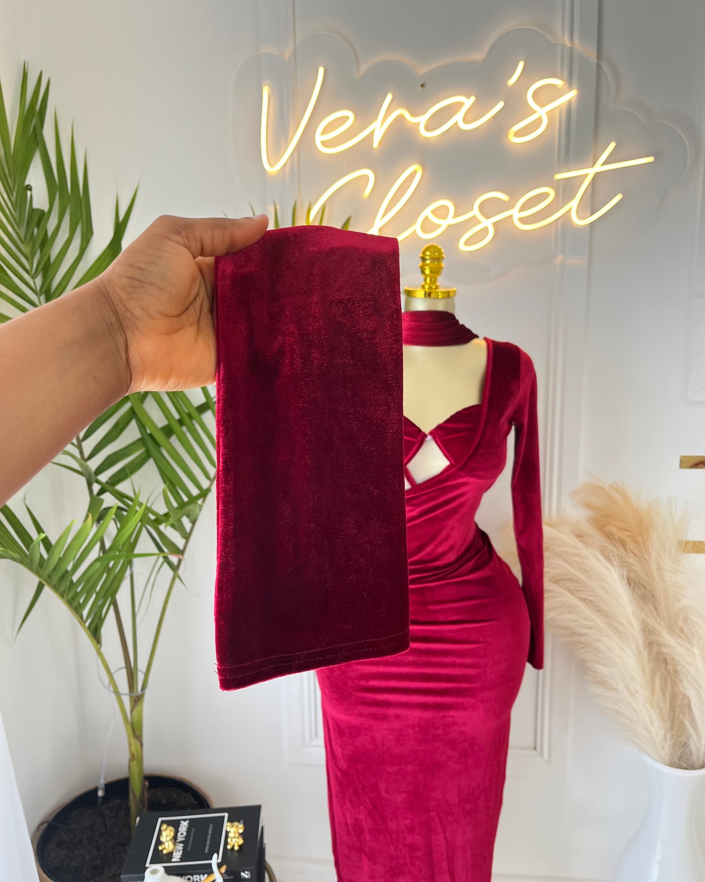 Step into the spotlight with the Always Flawless Maxi Dress—a stunning red velvet dress designed with bold cutouts and sleek long sleeves. This dress is perfect for turning heads at any formal event, crafted with medium-stretch fabric for a comfortable, yet striking fit.