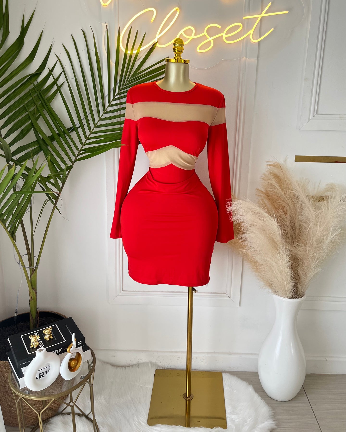 Make a bold statement in the Essential Cut-Out Mini Dress – a curve-hugging piece perfect for nights out or special occasions. This dress features striking cut-out accents, long sleeves, and a bodycon fit that highlights your figure in all the right places.