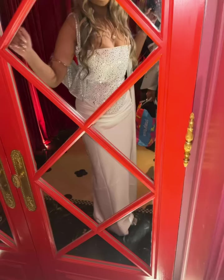 Shine like the main character in the Isolde Embellished Satin Maxi Dress — a crystal-studded bodice paired with a sleek satin skirt, perfect for celebrations and glam nights.