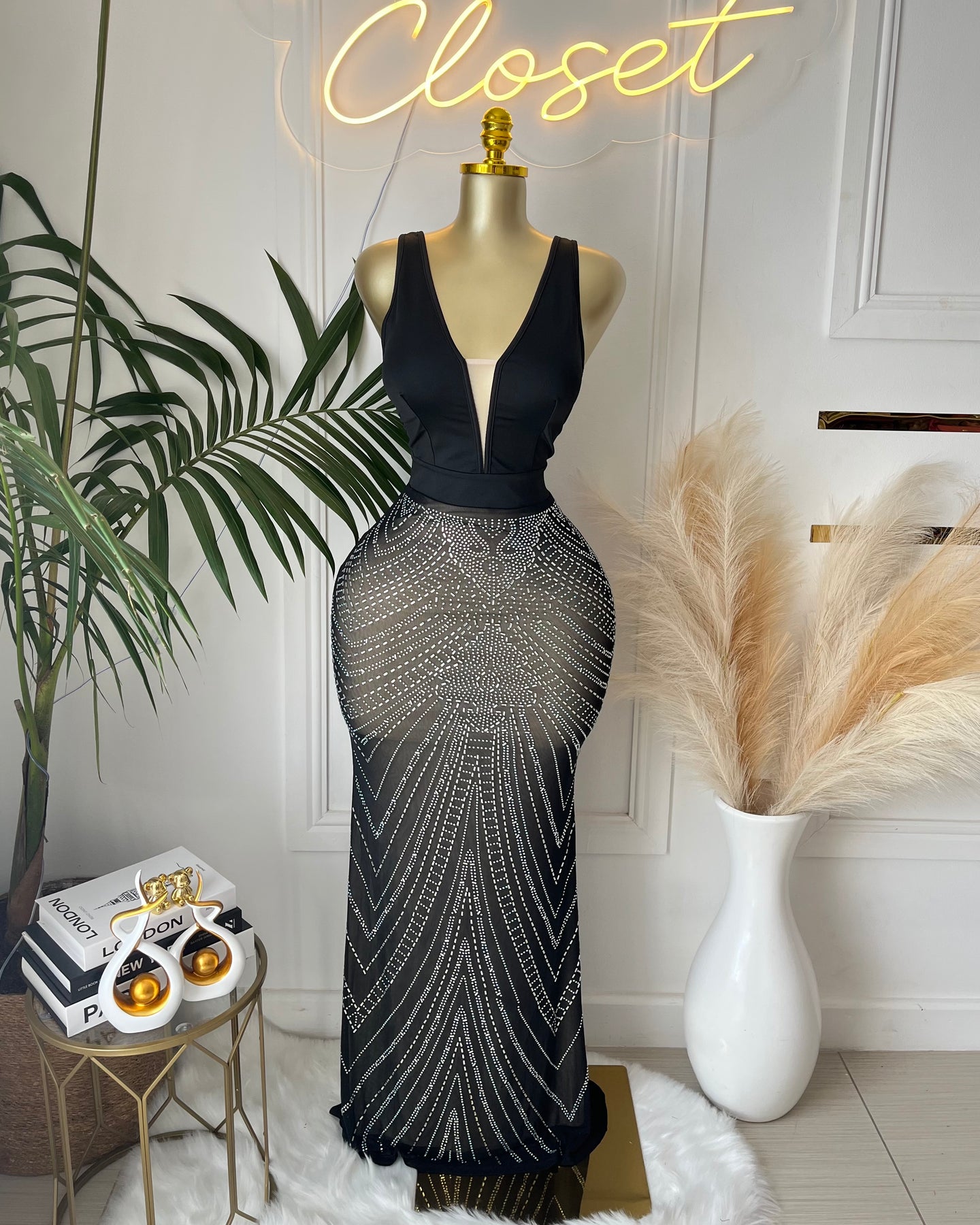 The Jenela Maxi Dress is an elegant, floor-length gown designed to make a statement at any event. With its shimmering details and flattering silhouette, this dress is perfect for special occasions. The Jenela Maxi Dress offers a slightly oversized fit with a good stretch for comfort.