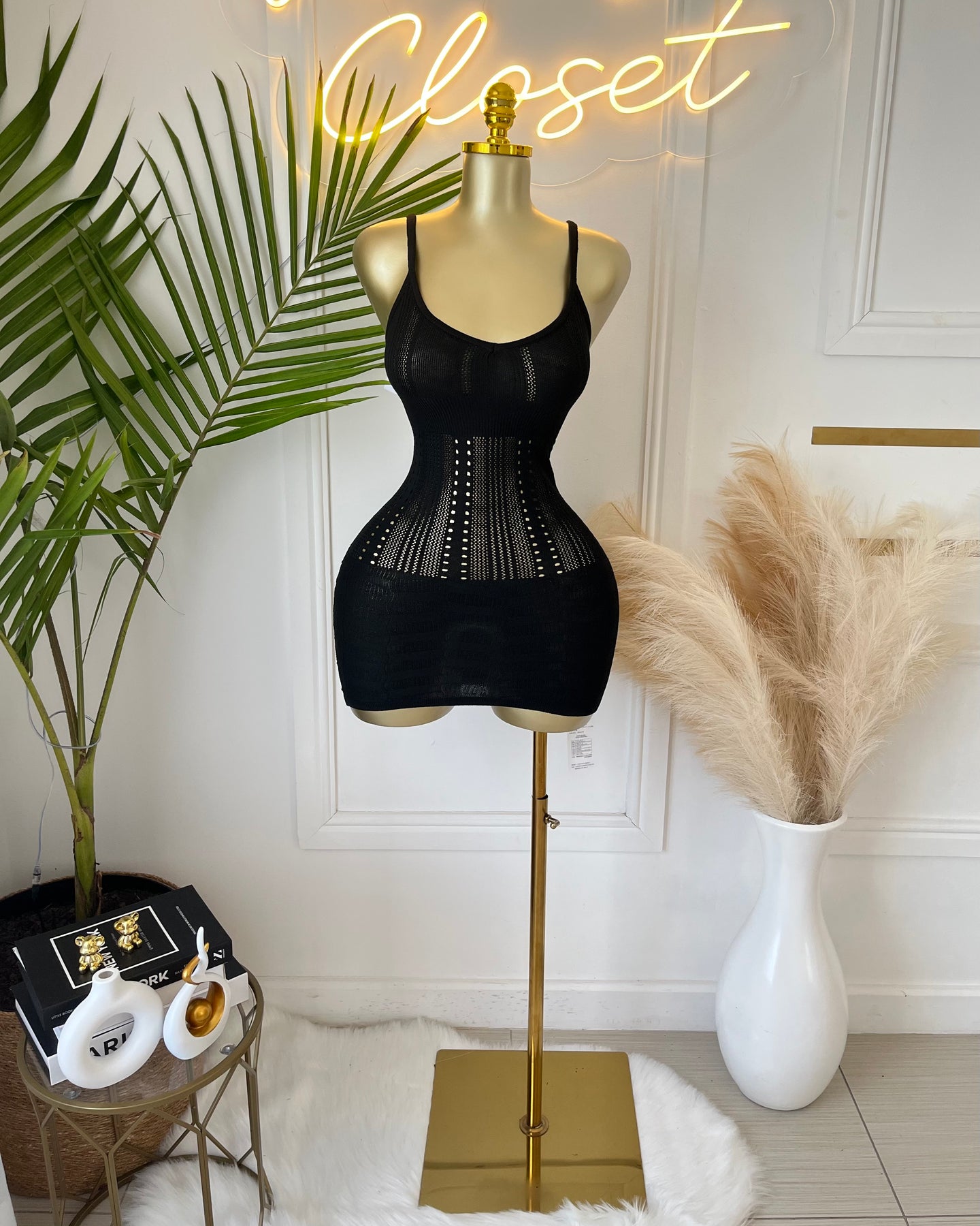 The Kimmy Sheer Mini Dress is a bold and stylish black bodycon dress with a sheer design, perfect for night outs or special events. This dress hugs your curves with good stretch and provides a chic, fitted look.