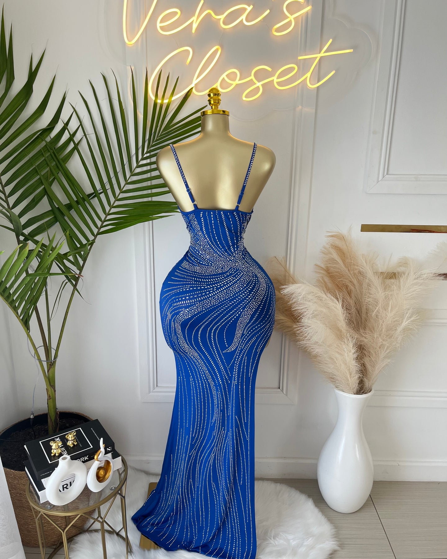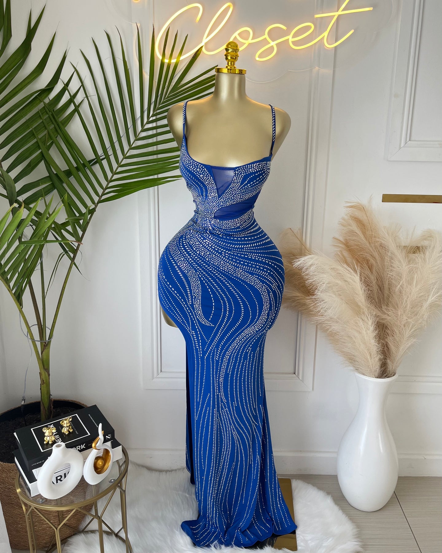 • Clothing Feature: Embellished detail, high slit, curve-hugging fit