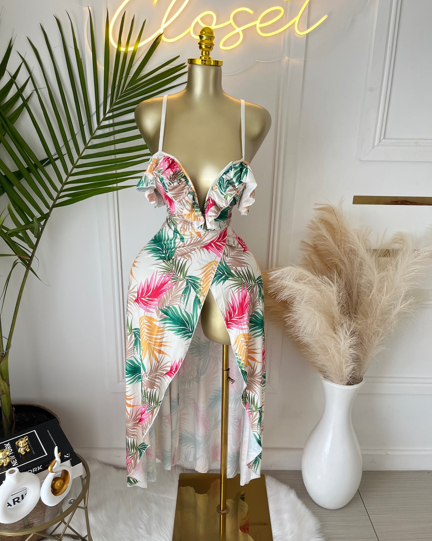 • Clothing Feature: Tropical print, side slit, lightweight fabric