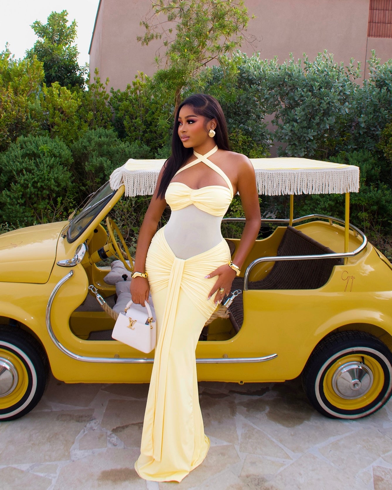 Amara Draped Elegance Gown yellow