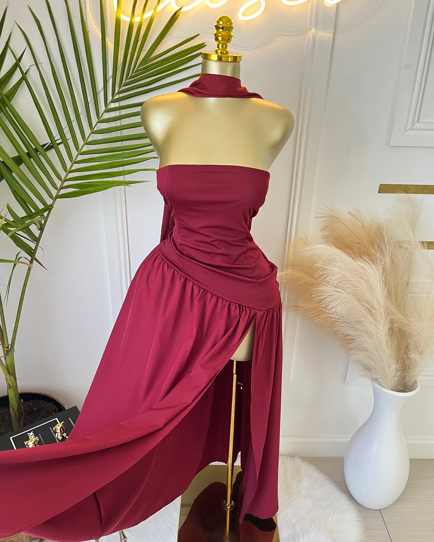 Amara Draped Elegance Gown is a timeless statement—sleek, refined, and irresistibly feminine with its sculpted bodice, flowing skirt, and dramatic shoulder drape.