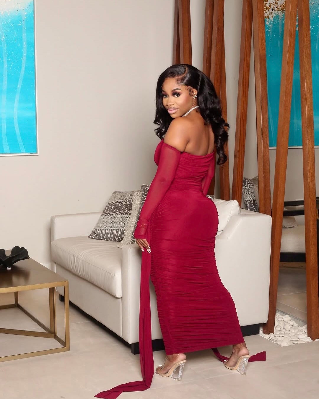 The added draped side detail gives it that extra touch of luxury, making it perfect for birthdays, date nights or special occasions where you want to stand out.