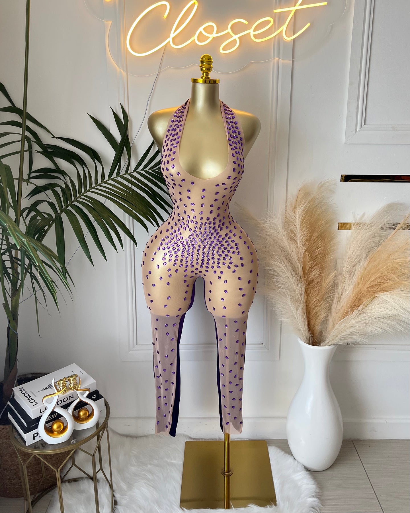 Me Wow Rhinestone Sheer Jumpsuit