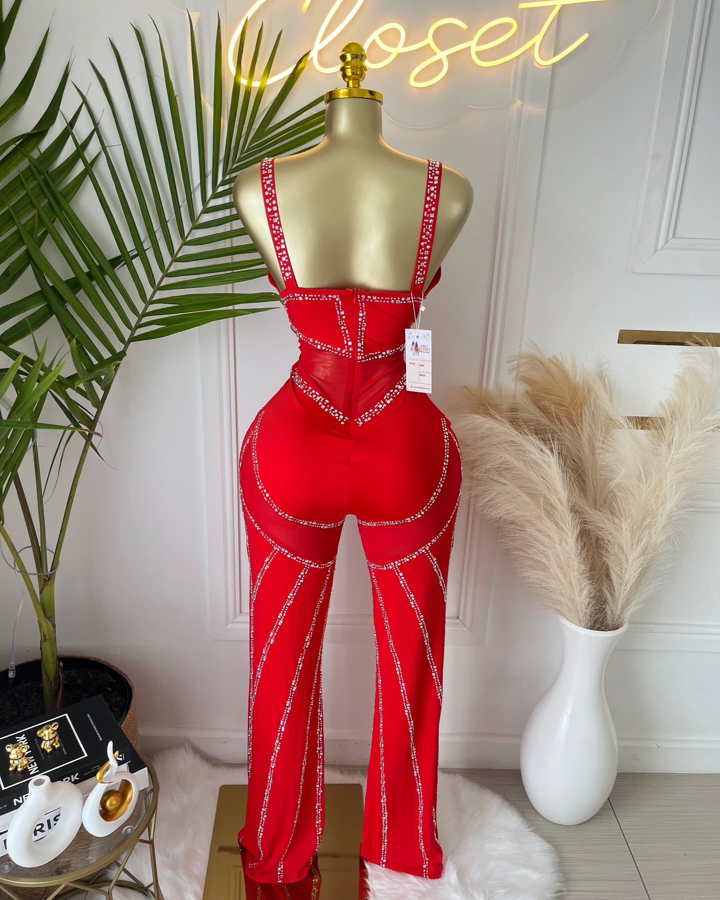 Make a bold entrance in the Philly Mesh Rhinestone Jumpsuit – designed for those who love to shine. This statement piece features a sheer mesh base adorned with shimmering rhinestones, a body-hugging fit, and a daring cut-out design. Perfect for special occasions, club nights, and unforgettable evenings.