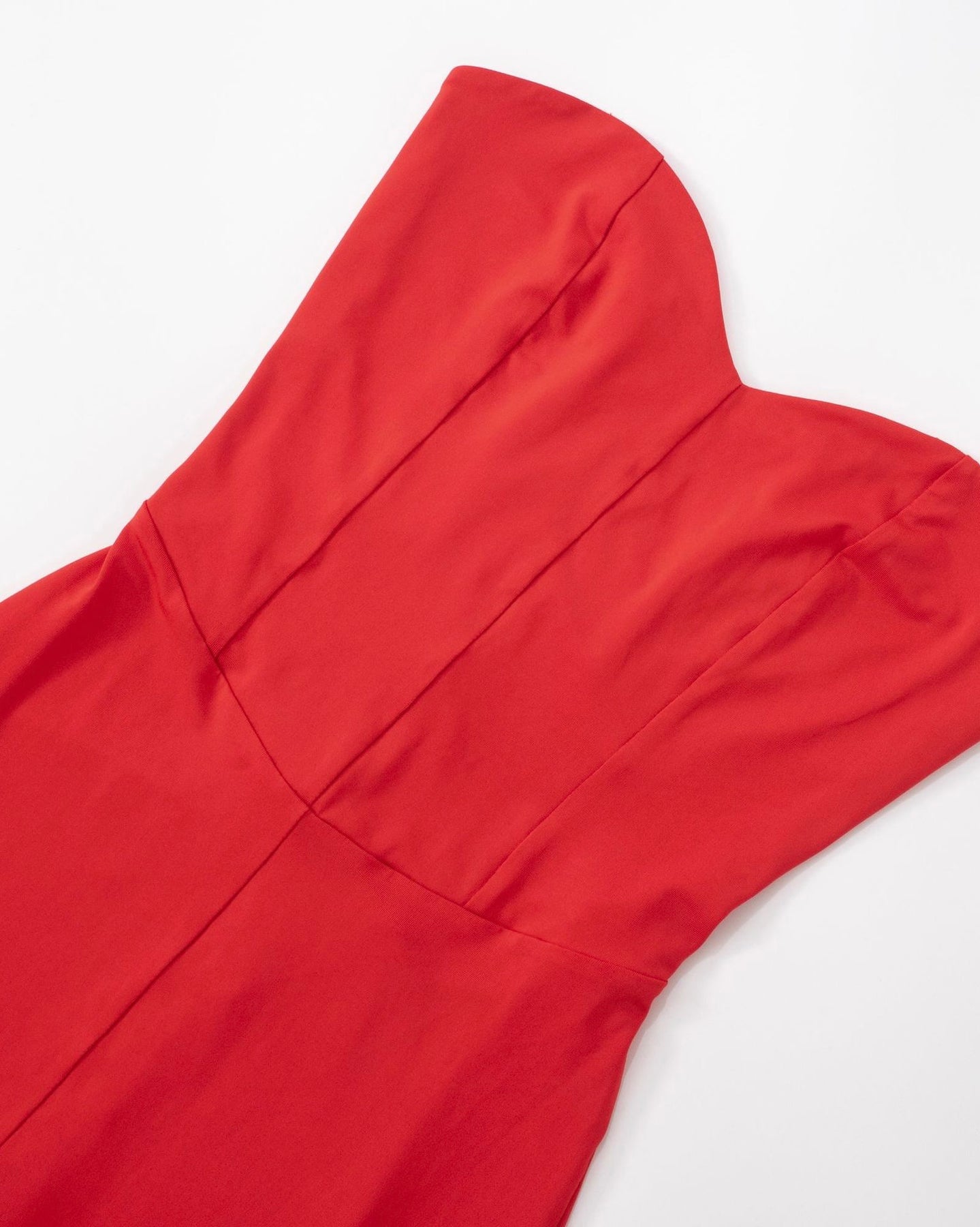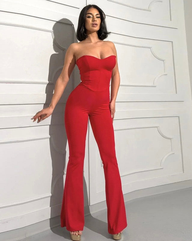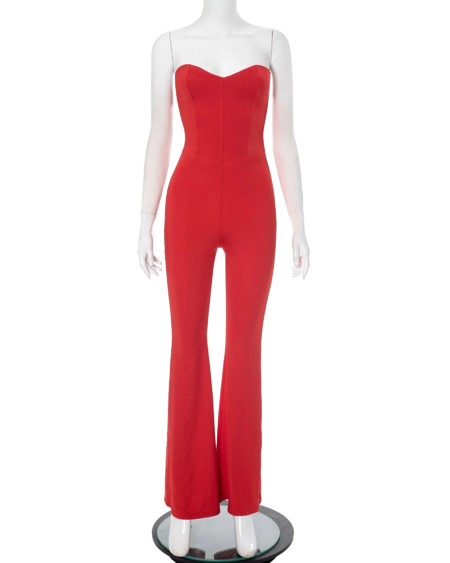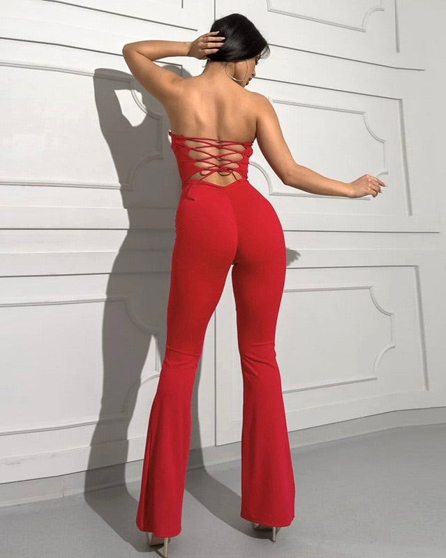 • Clothing Feature: Lace-up back, Strapless, Flared legs