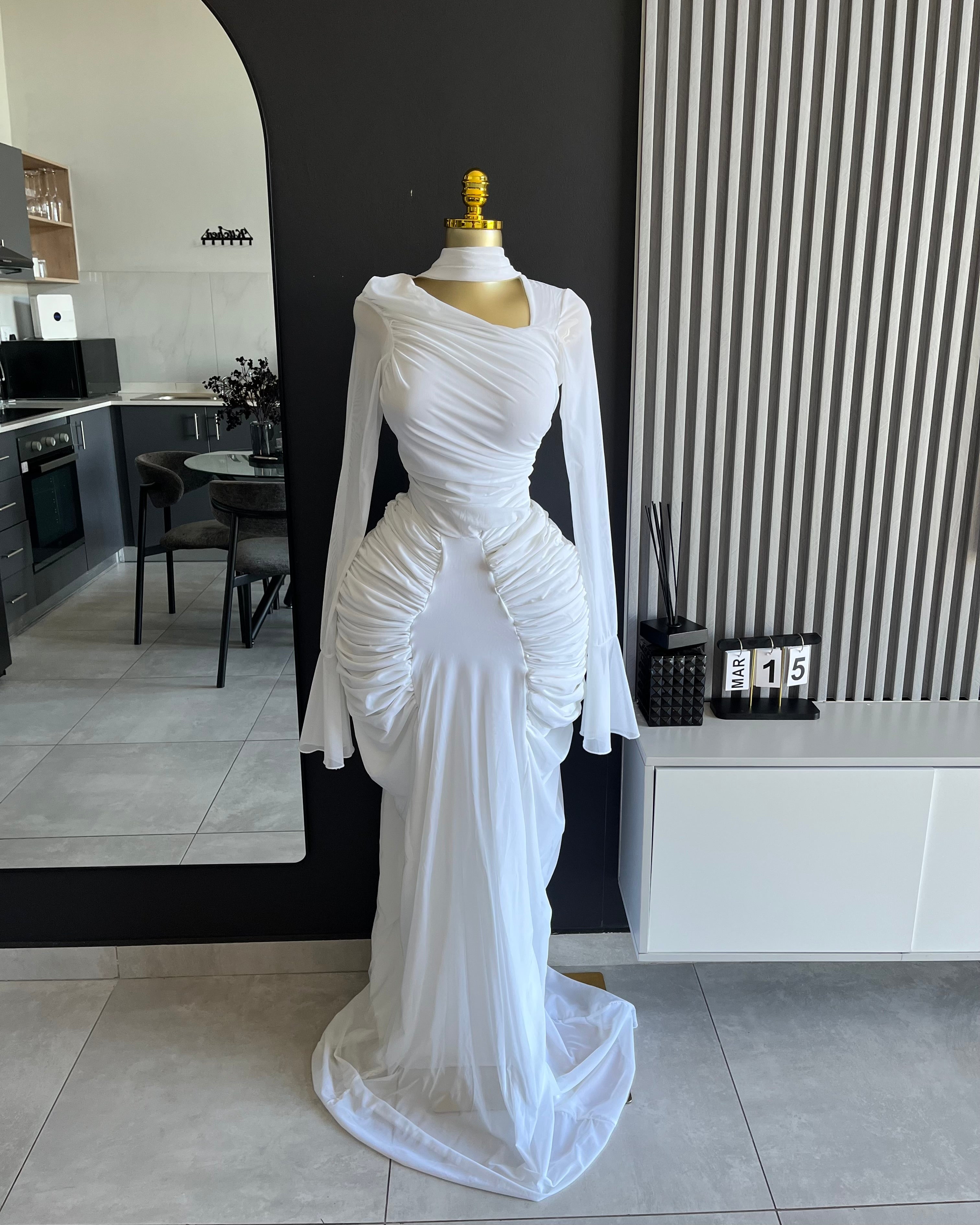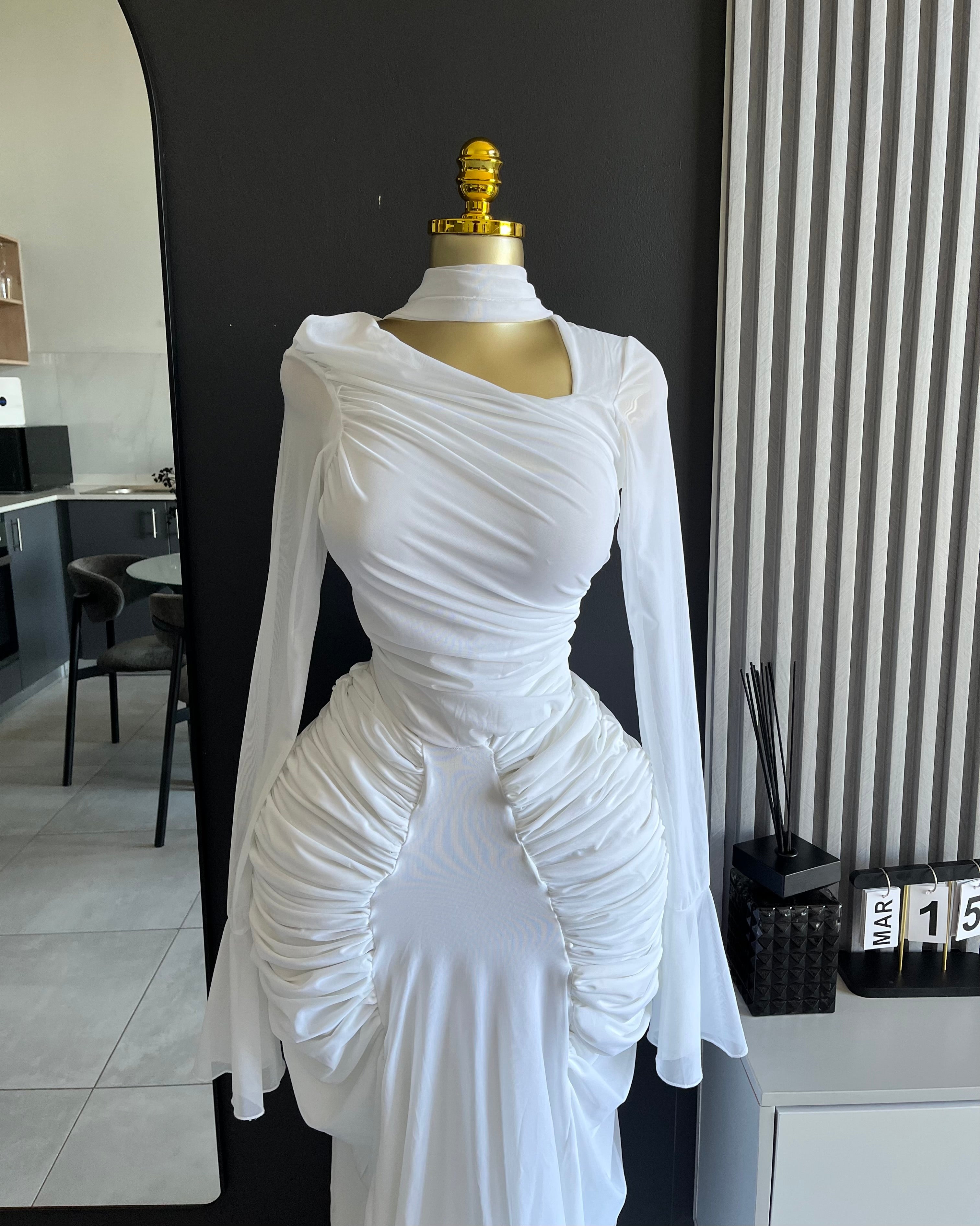 Davina Mesh Illusion Halter Gown White