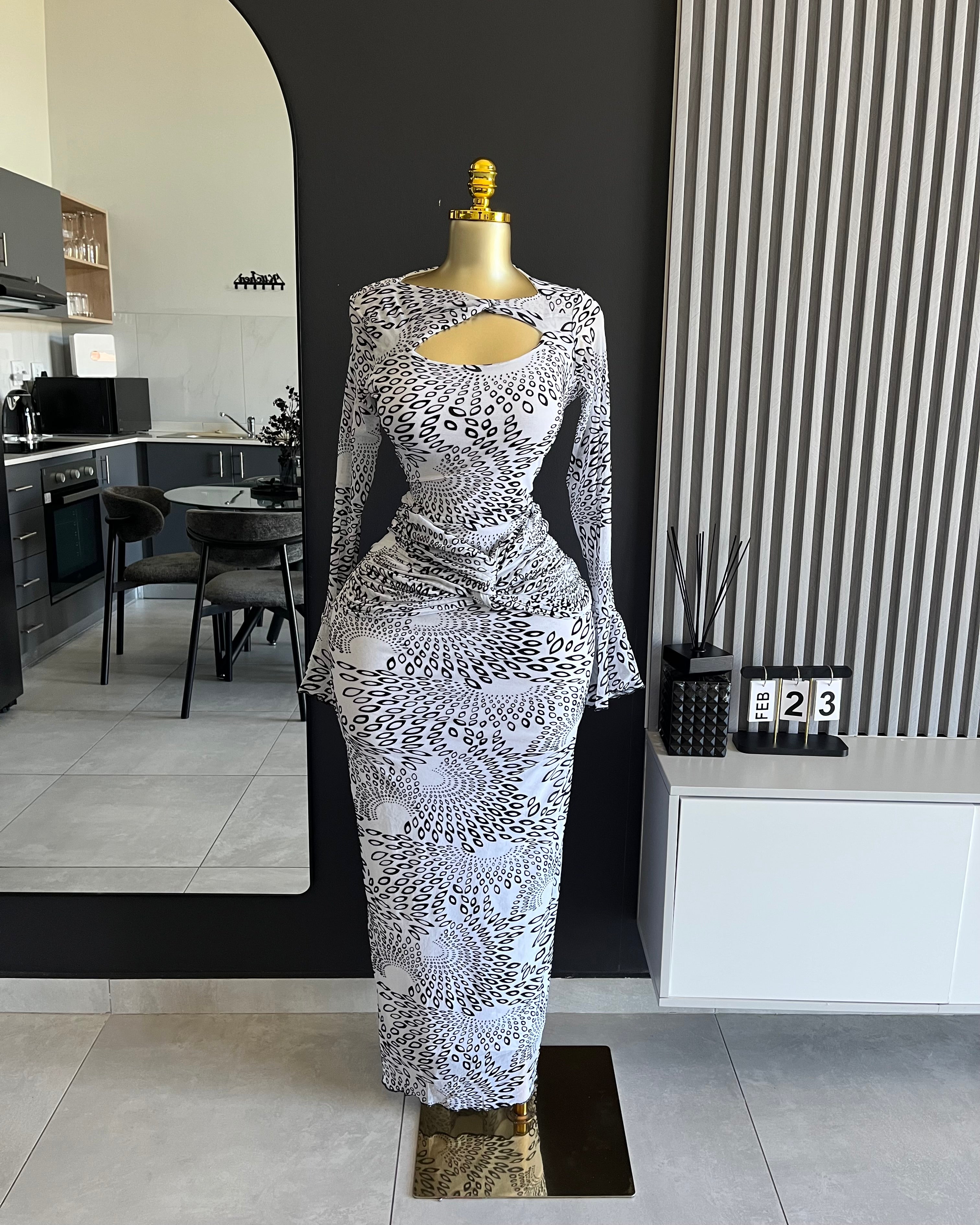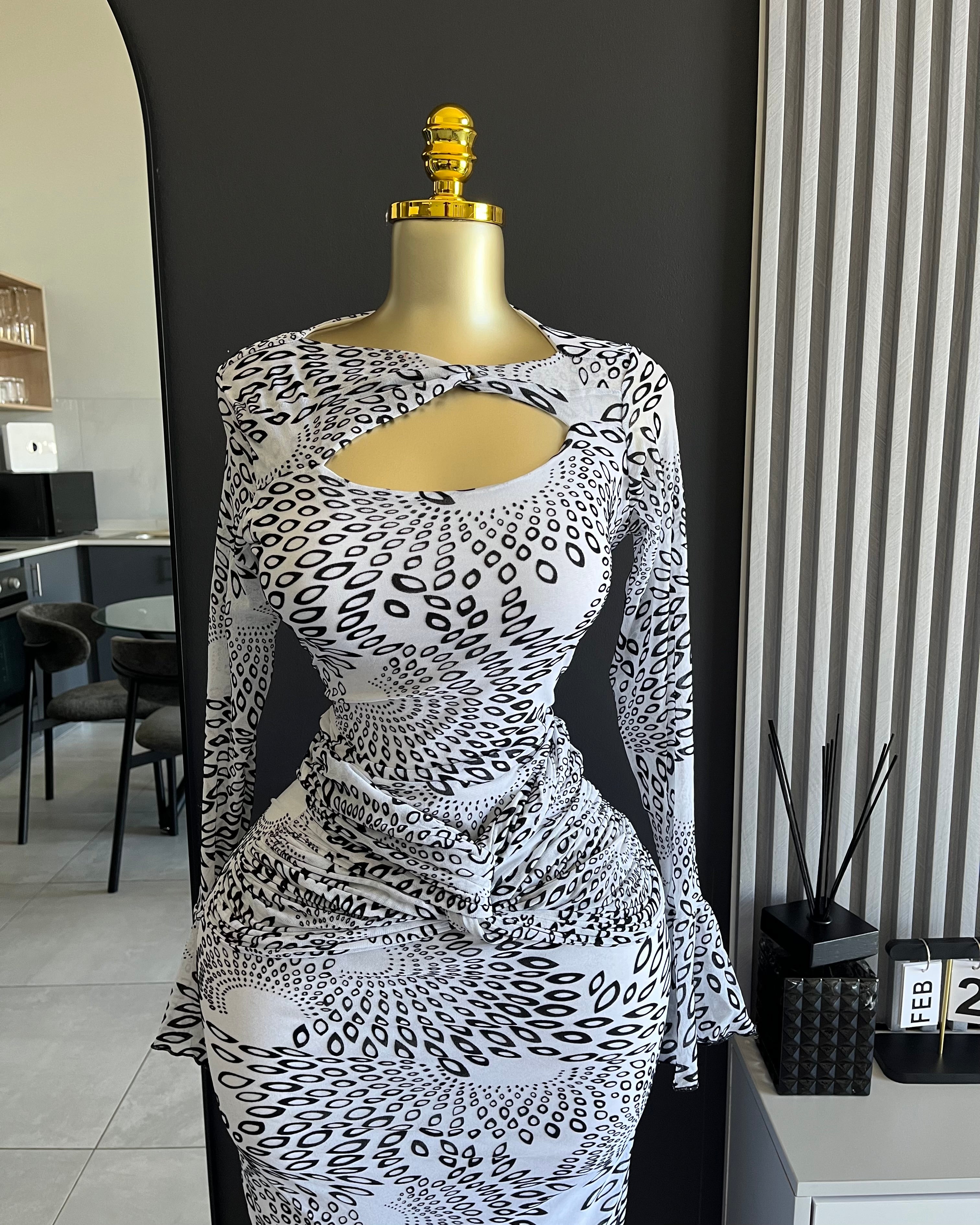 Zelara Mesh Print Cut-Out Maxi Dress