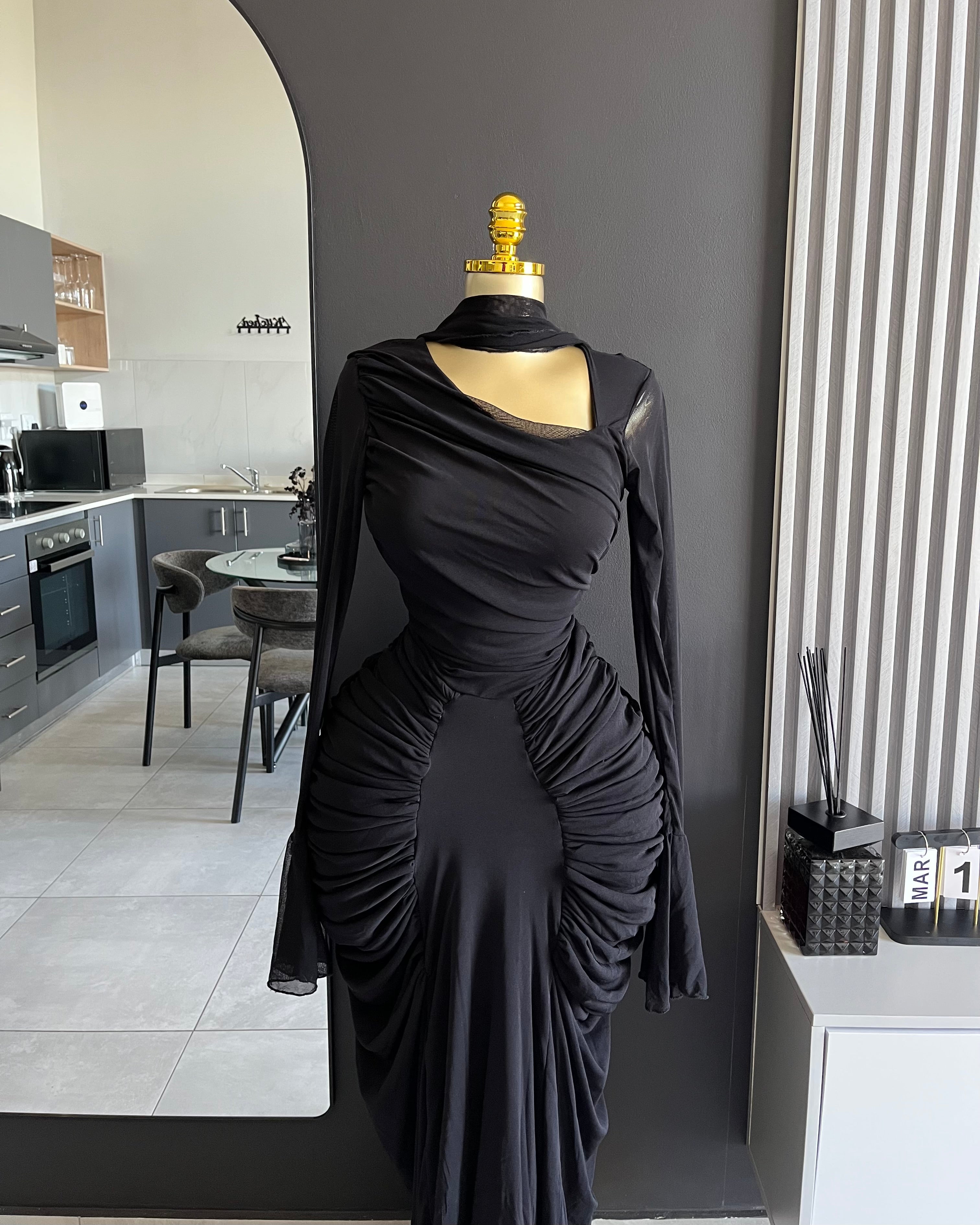 Bianca Draped Cutout Maxi Dress Black