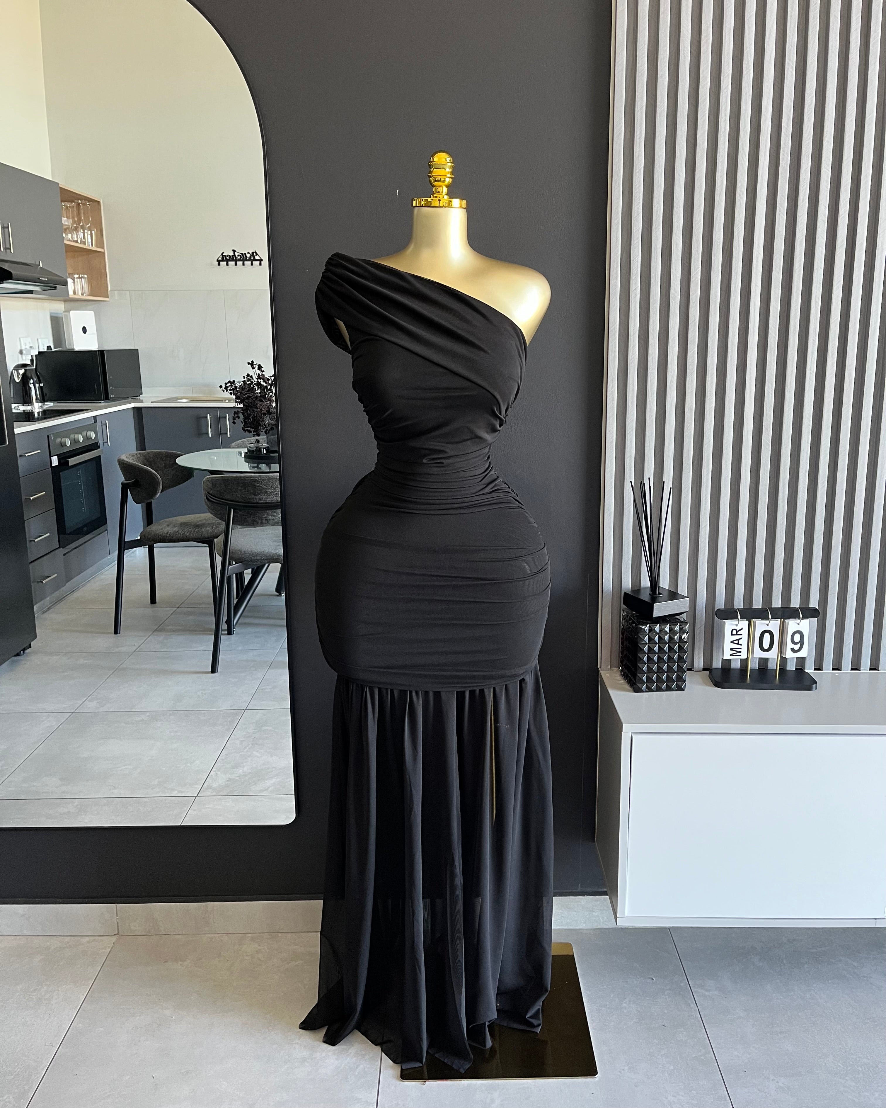 Kendall One-Shoulder Ruched Maxi Dress Black