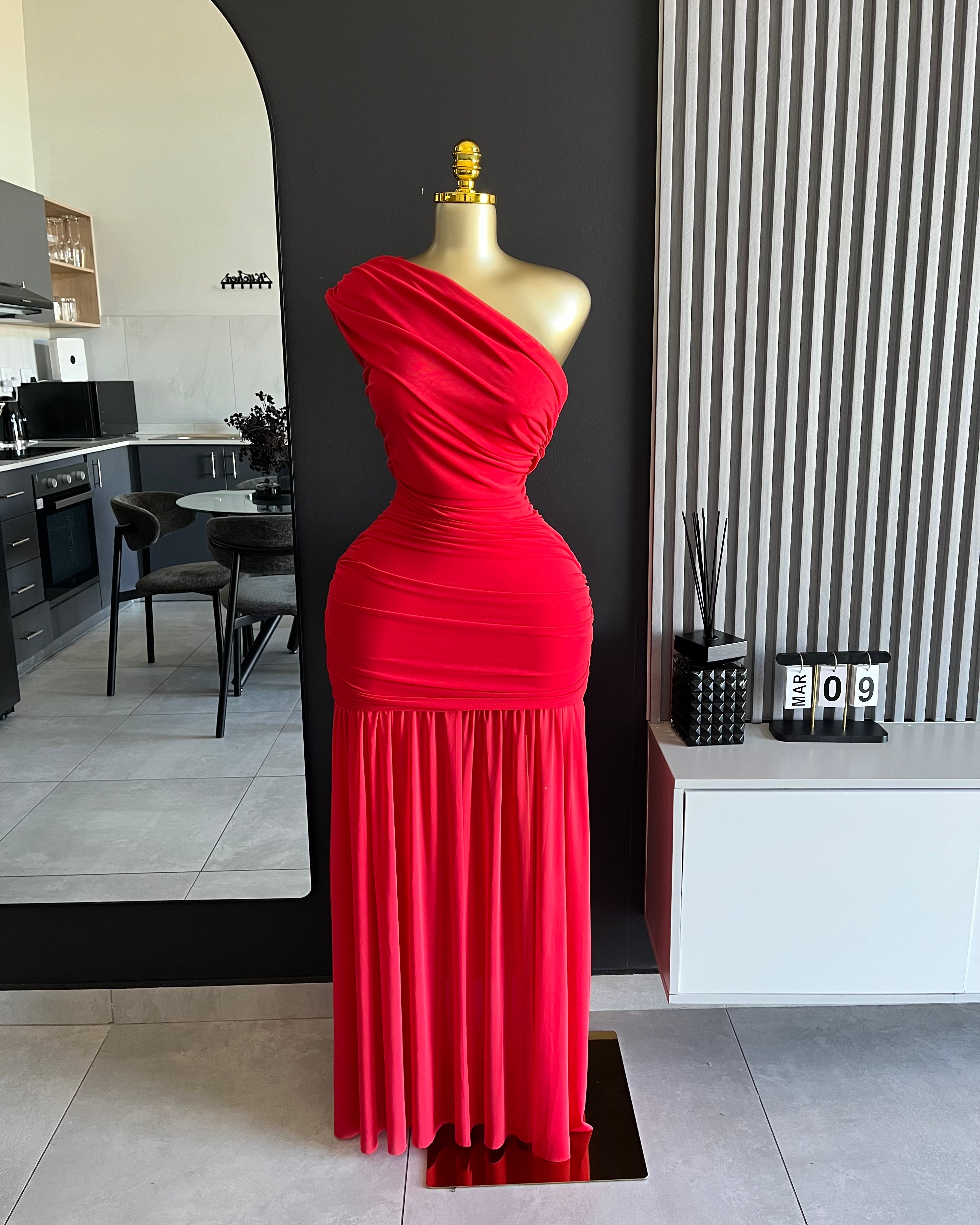 Kendall One-Shoulder Ruched Maxi Dress Red