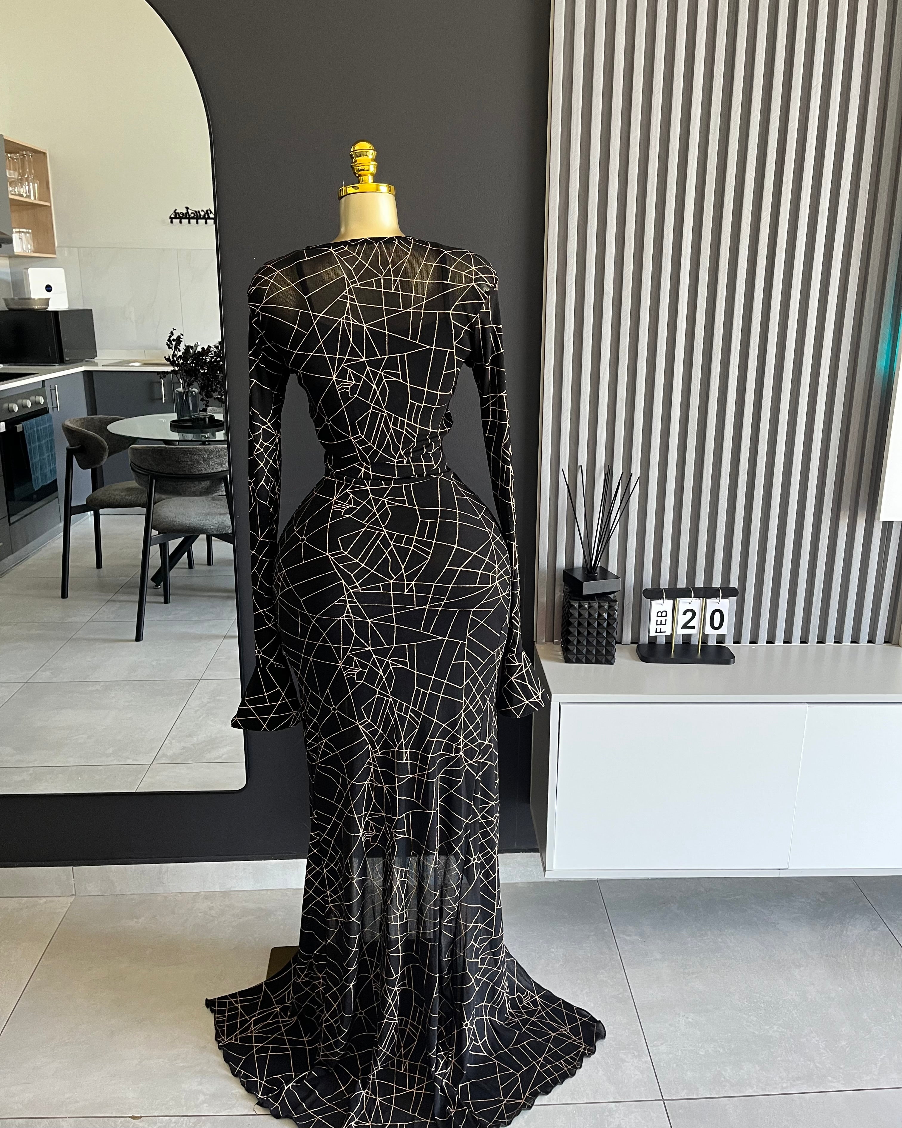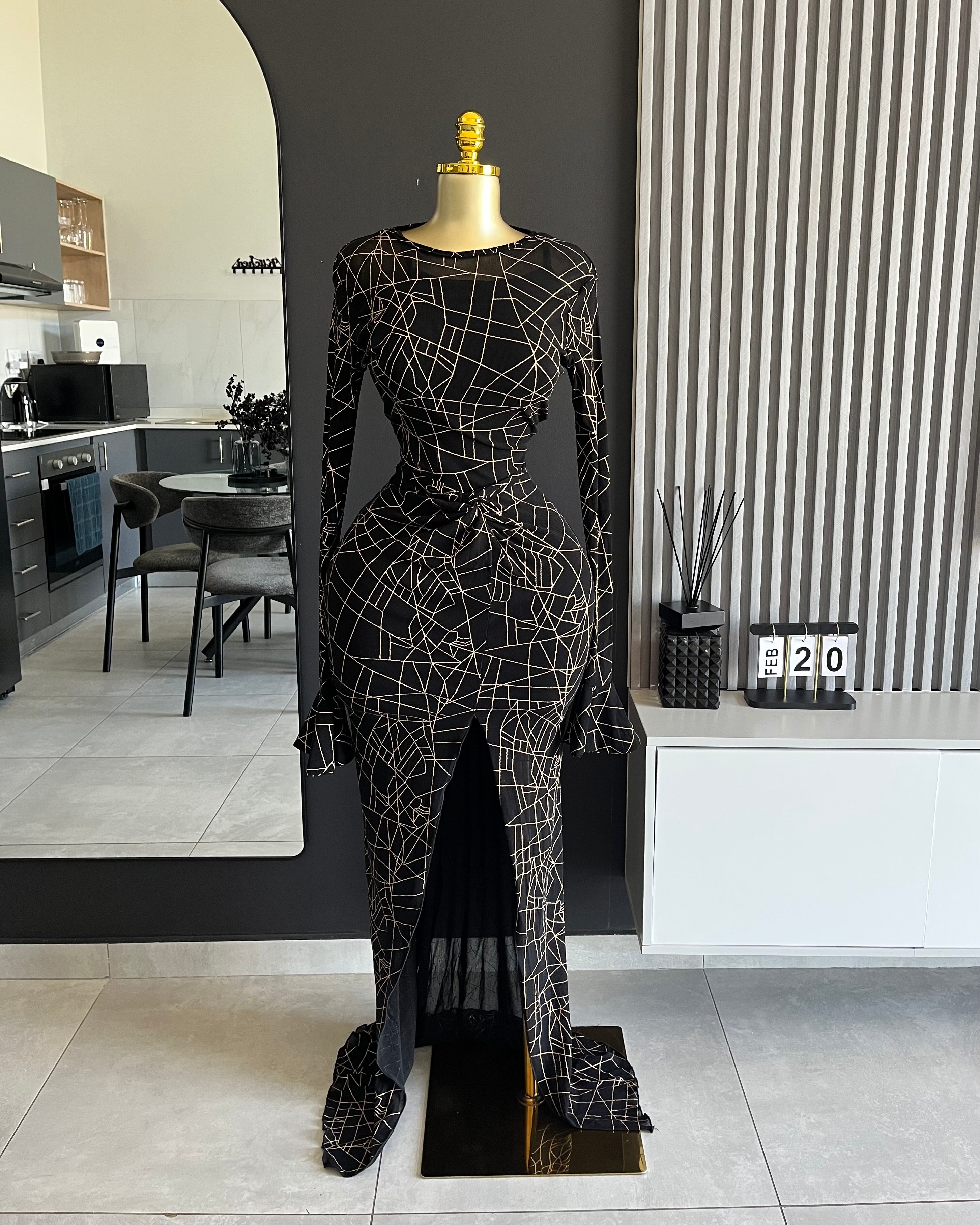 Noiré Geo Mesh Maxi Dress