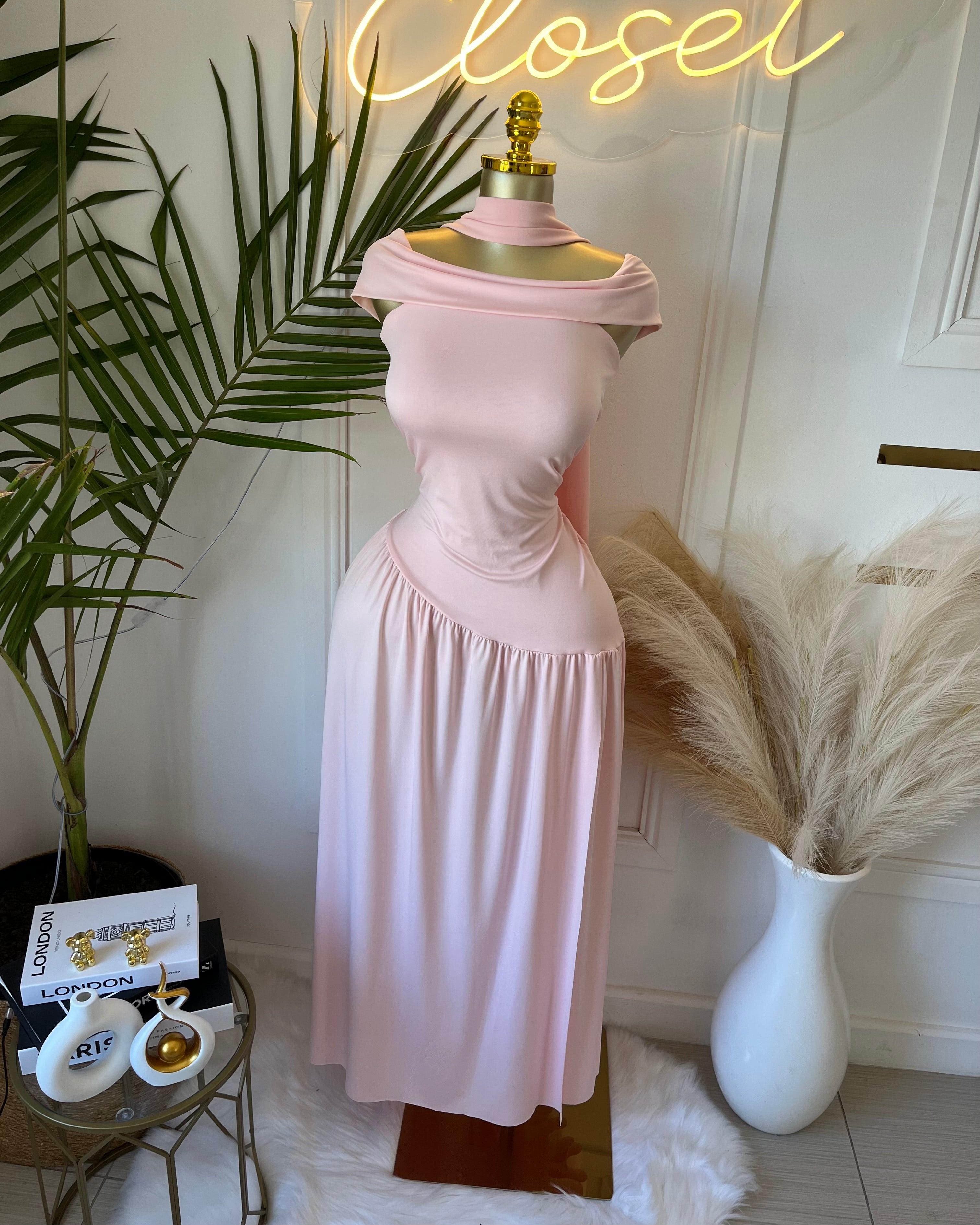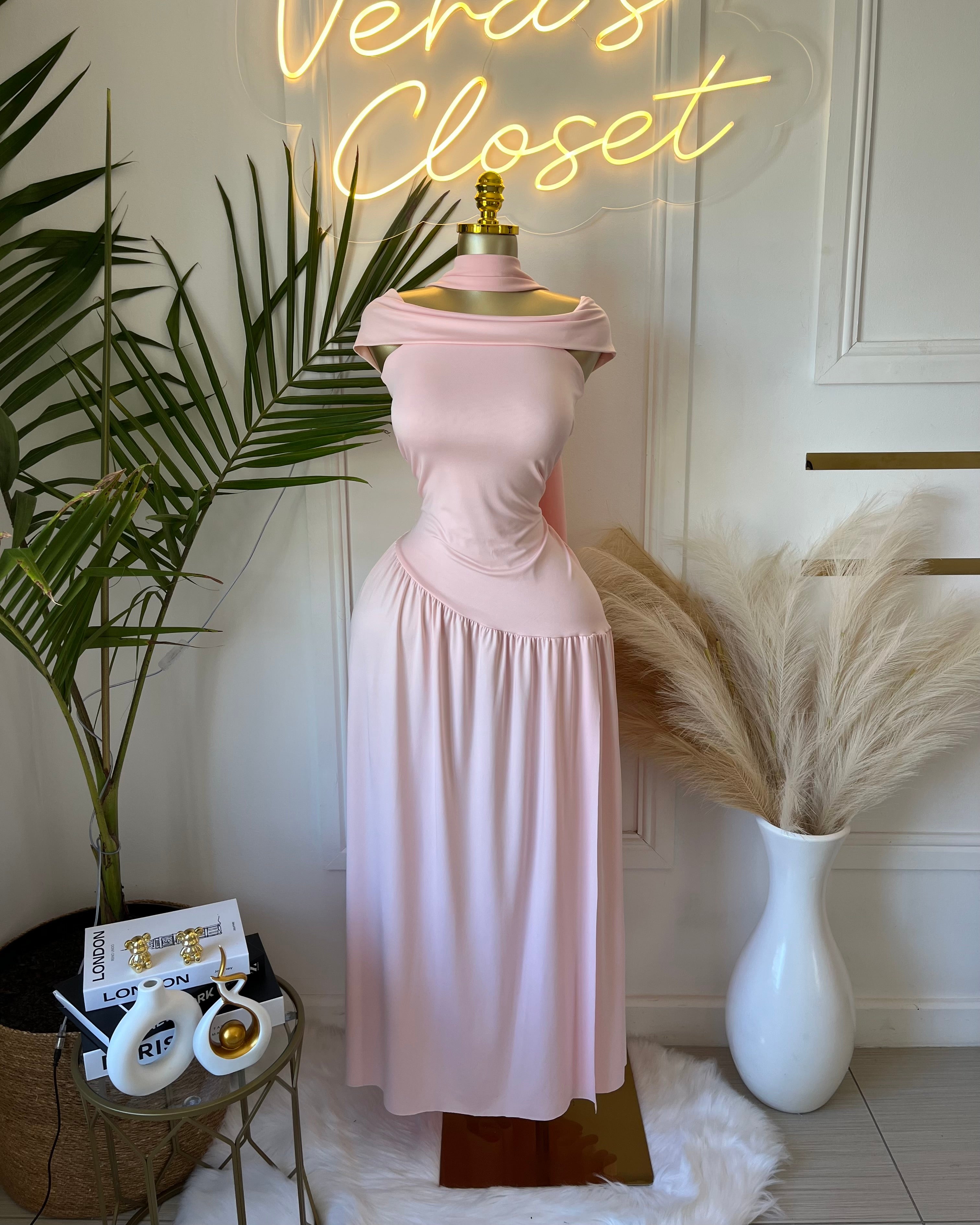 Amara Blush Off-Shoulder Maxi Dress