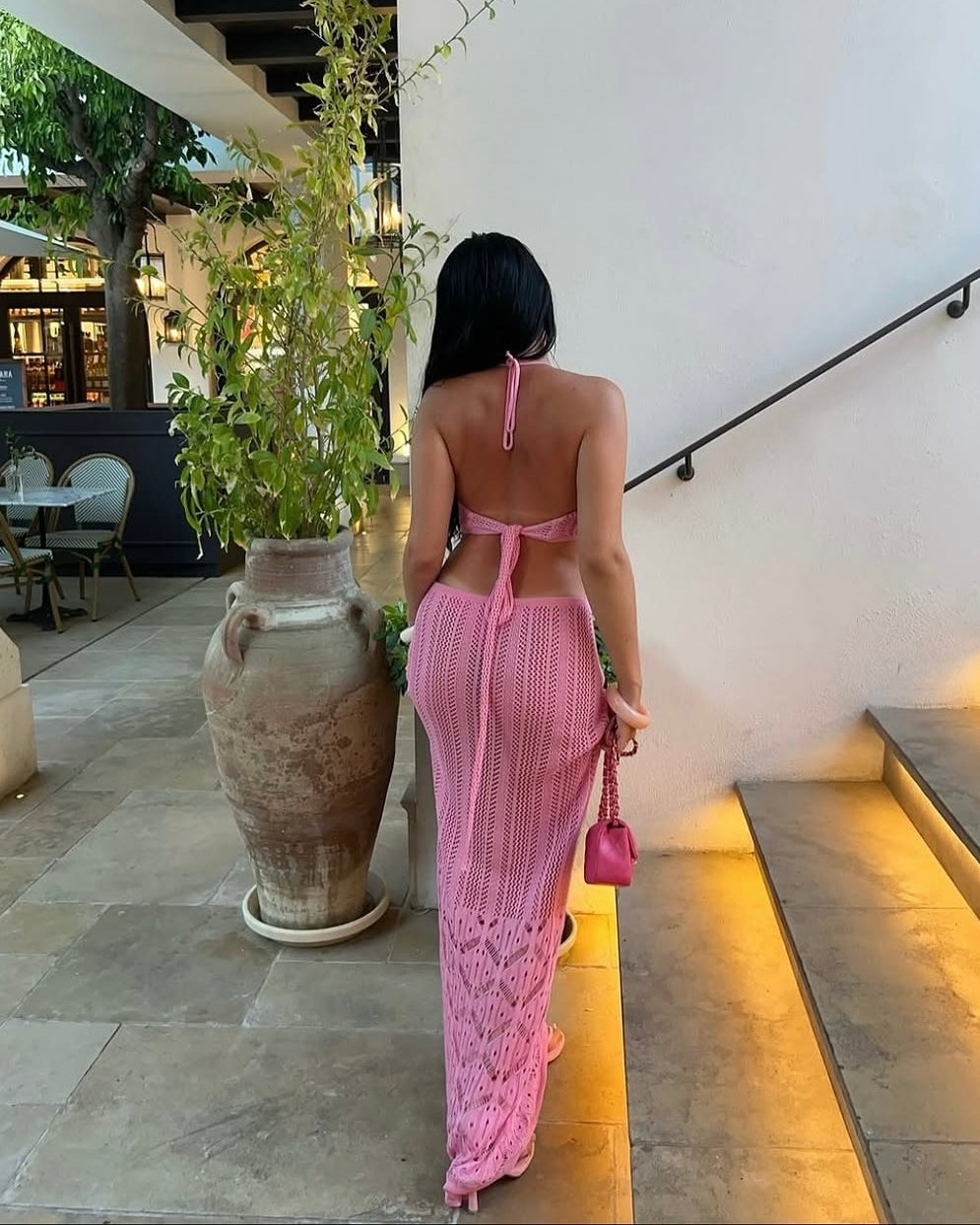 Sienna Pink Crochet Skirt Set