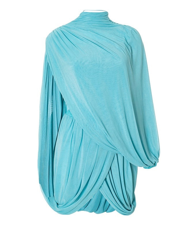 • Neckline: High neck / Draped silhouette