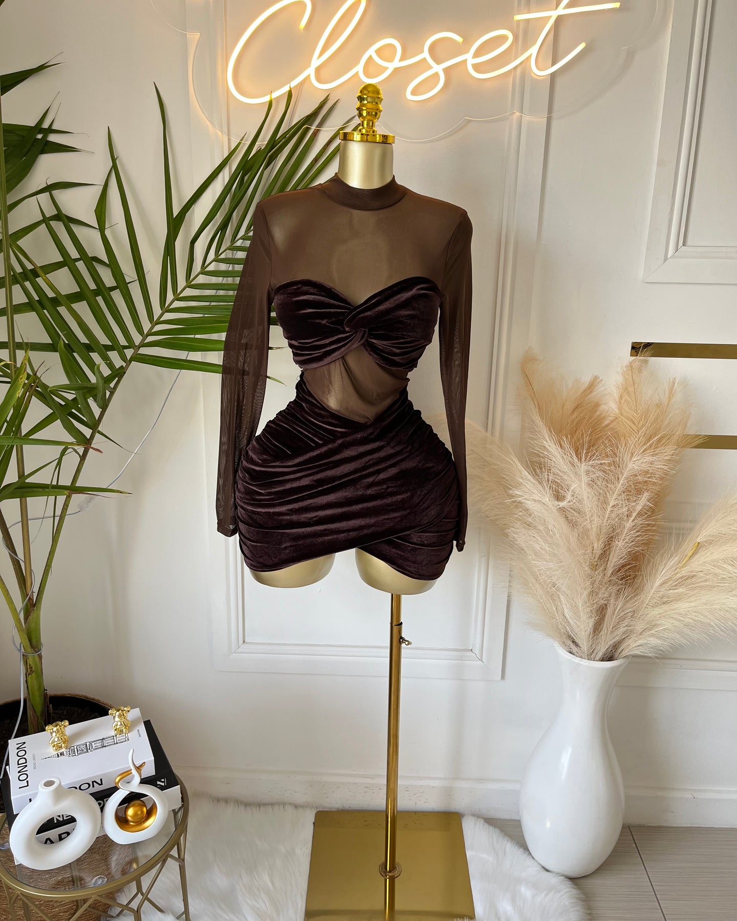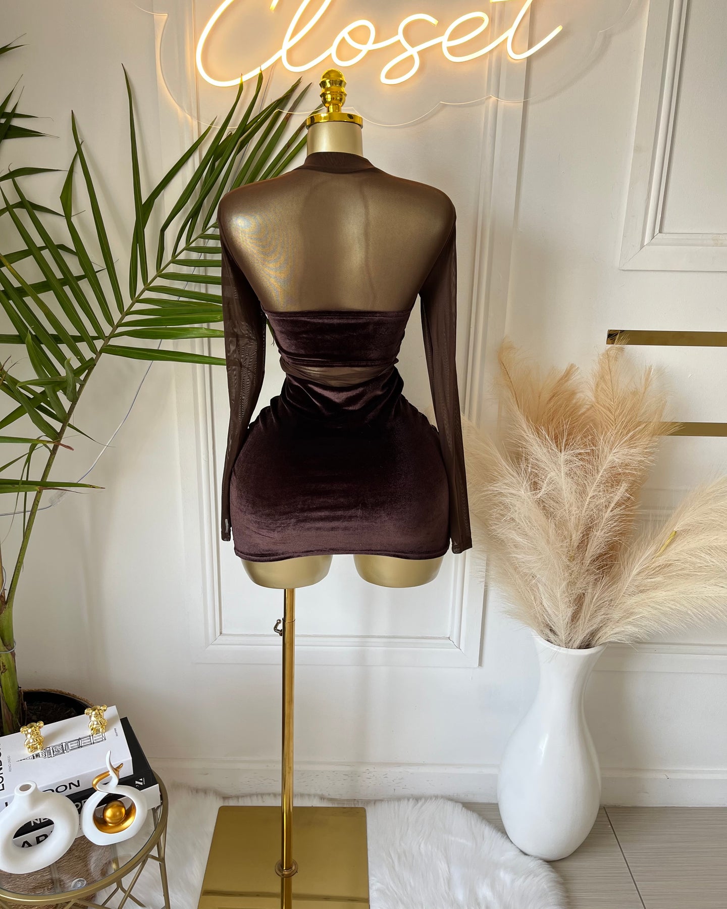Noirle Velvet Mesh Mini Dress