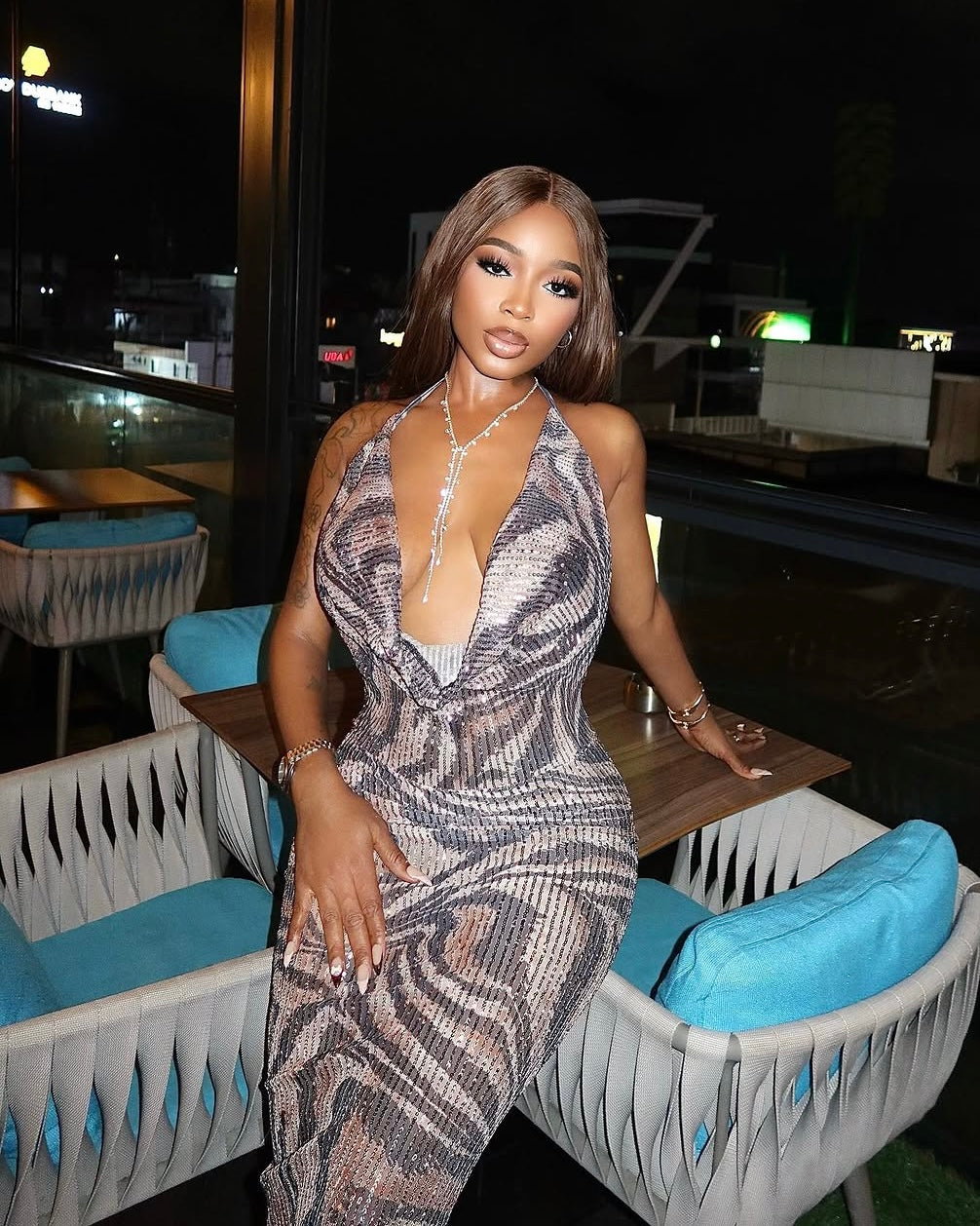 Command attention in the halter maxi dress with a deep plunge neckline, bodycon silhouette, and bold animal-inspired print—effortless evening glam.