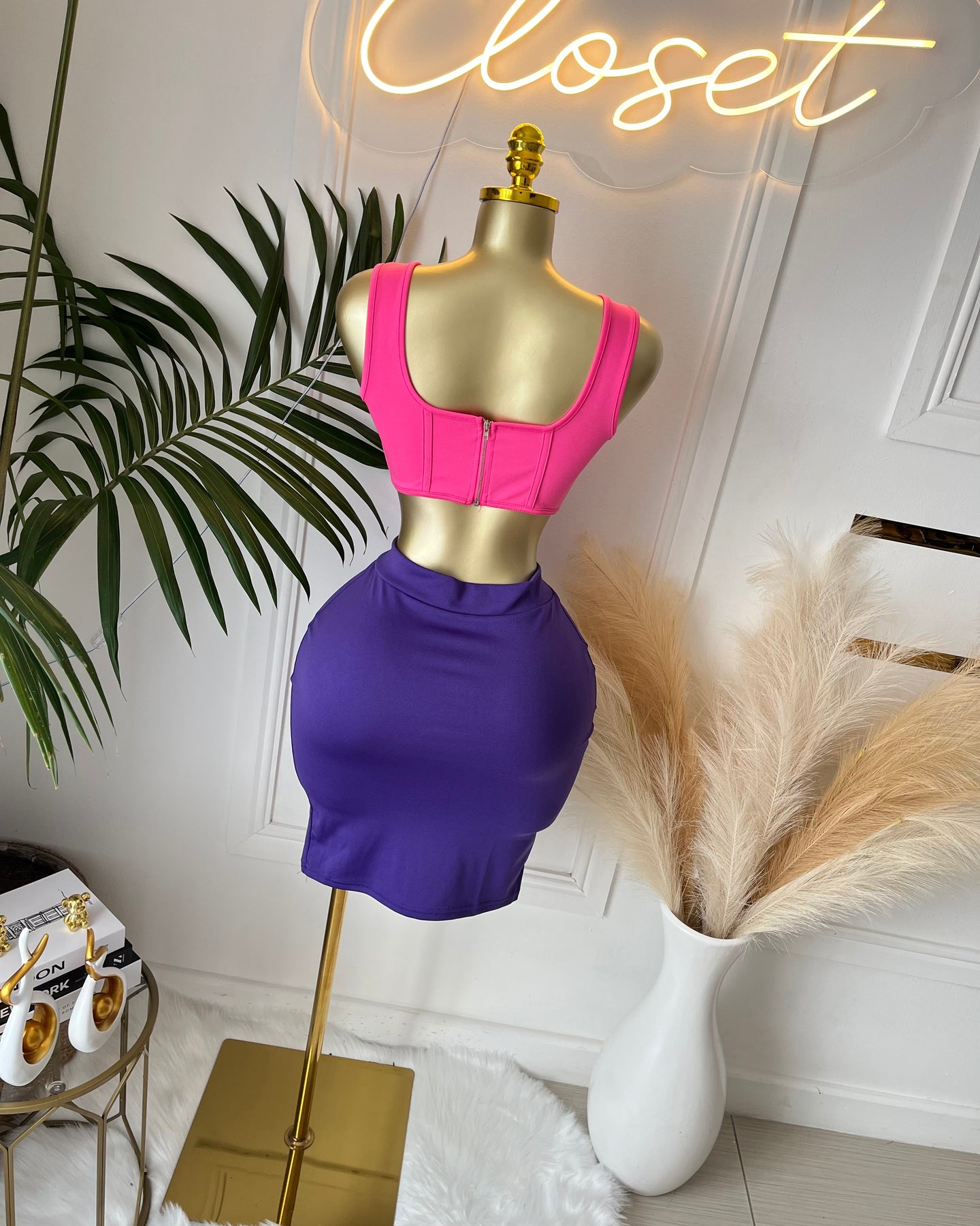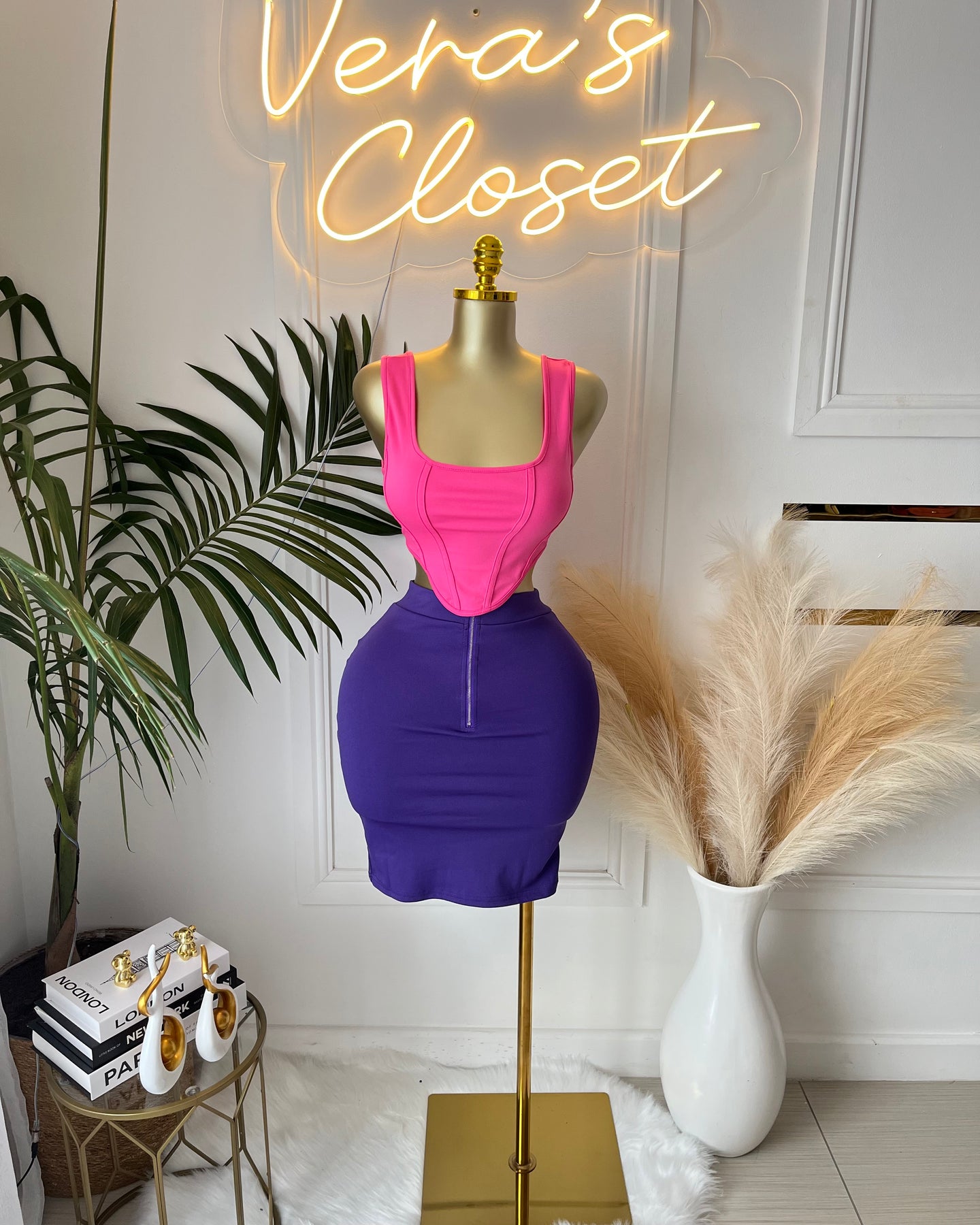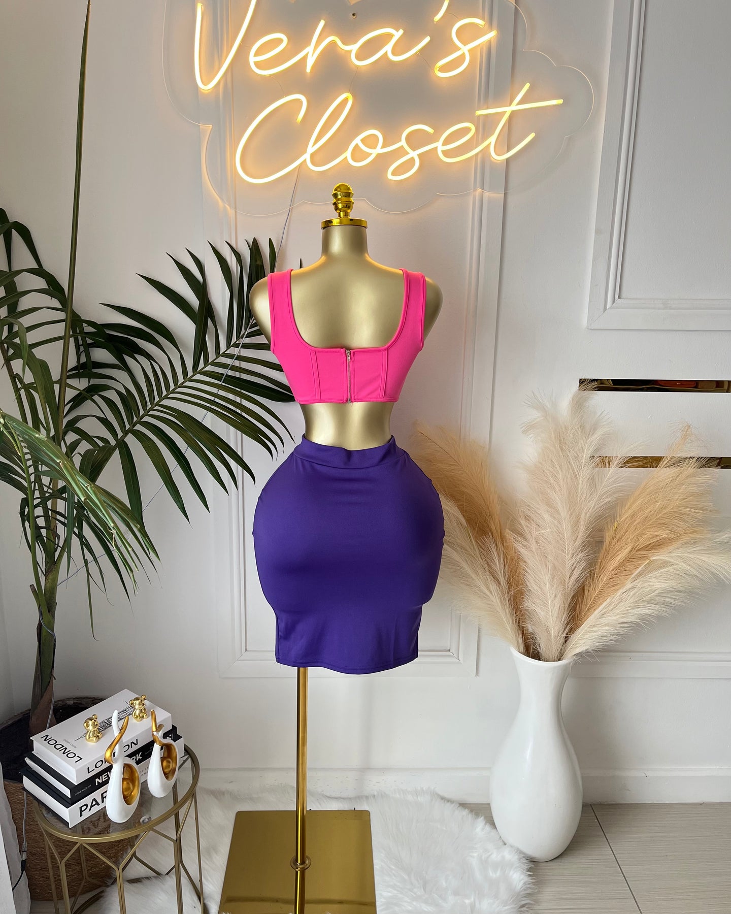 The Aziza Two-Piece Skirt Set is a chic and bold outfit that combines a fitted top with a complementary skirt. Designed with a good stretch and a flattering fit, this set is ideal for a night out or stylish events.