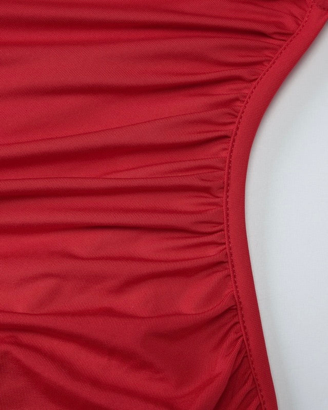 • Clothing Feature: One-shoulder design, Choker strap, Gathered neckline, Bodycon silhouette