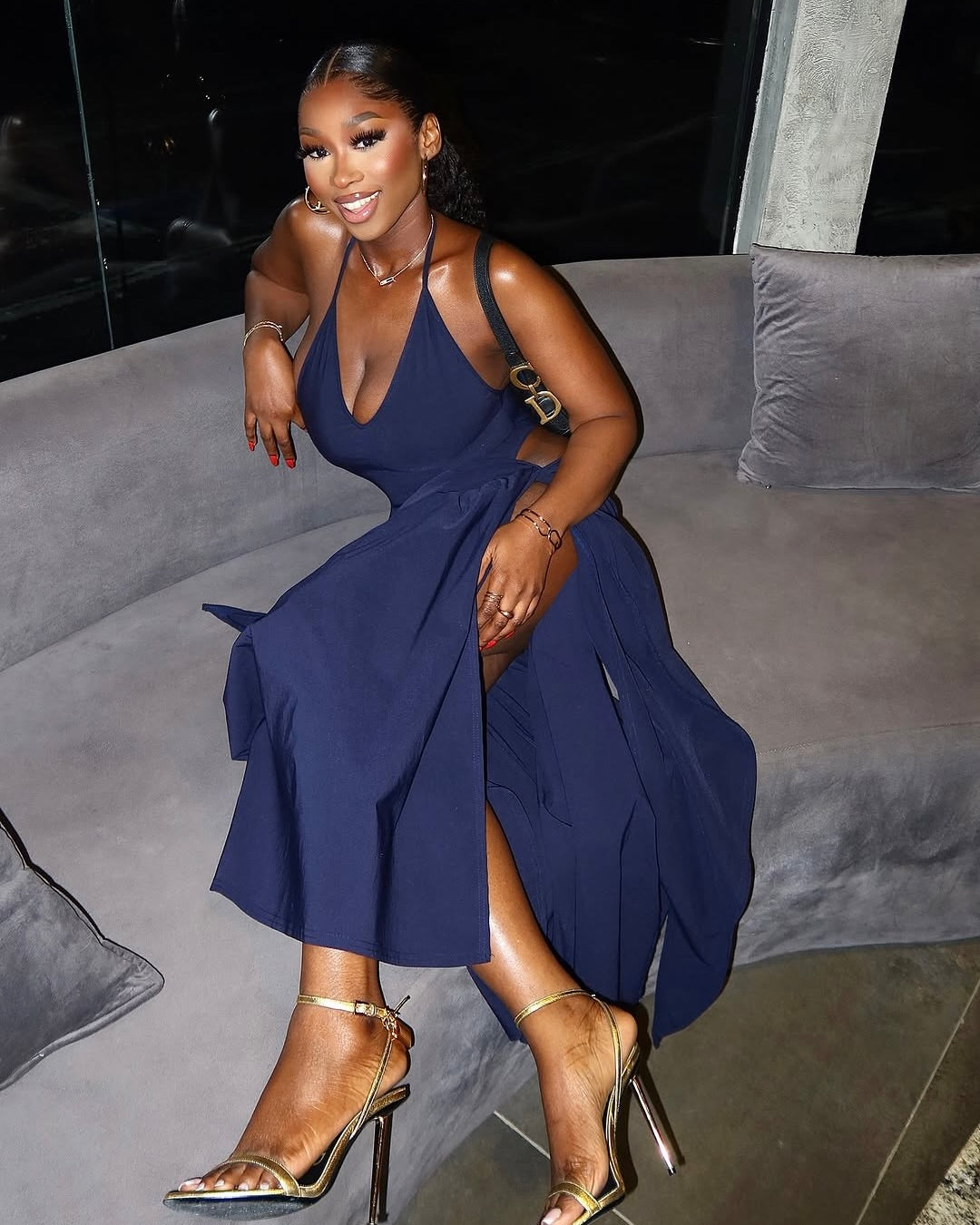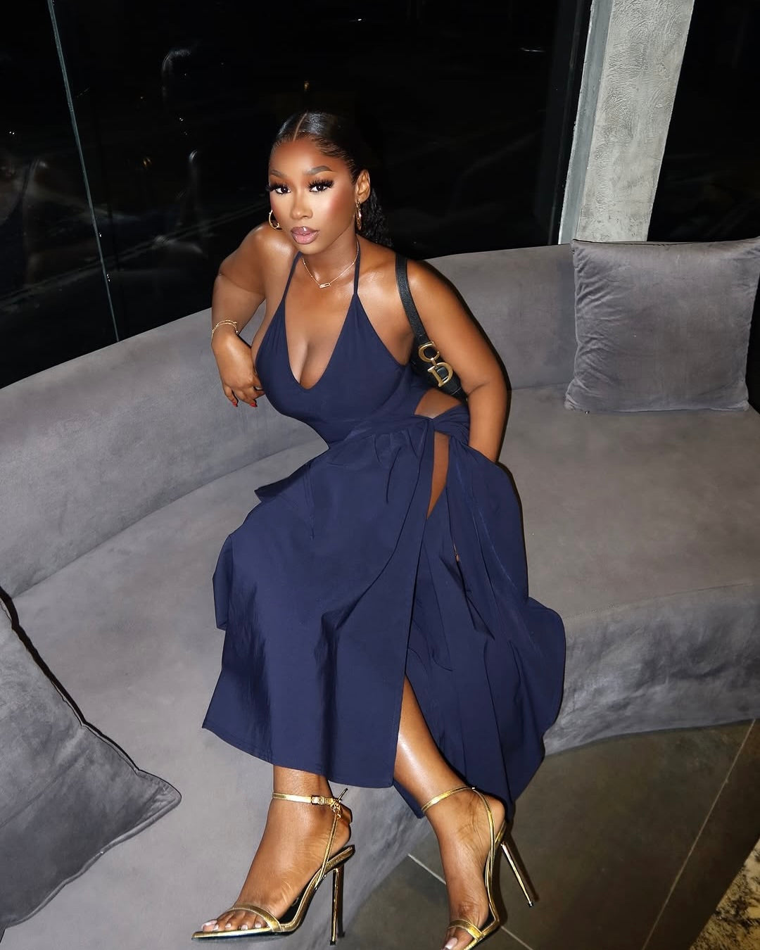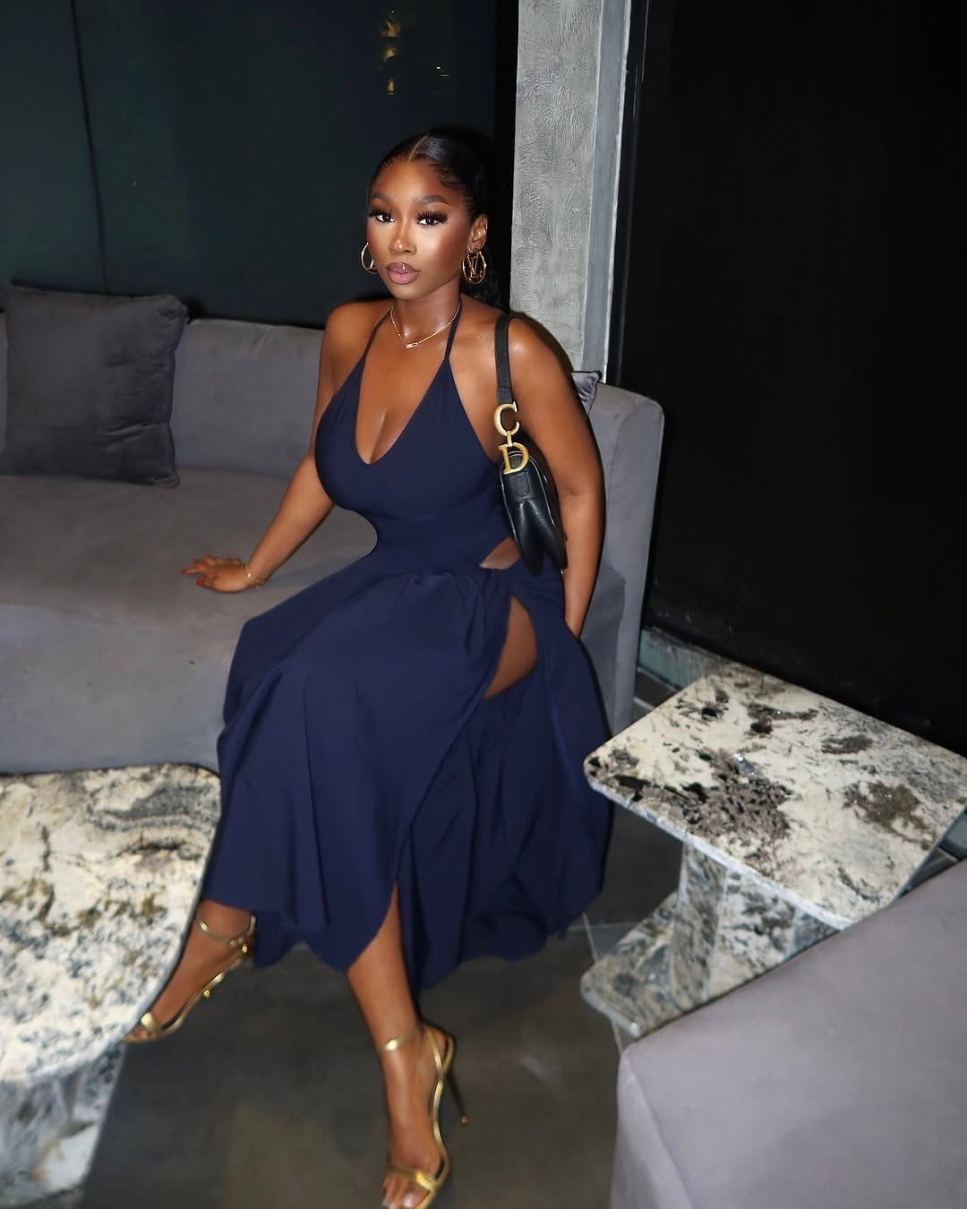 Make a daring entrance in the Selina Navy Maxi SKirt Set—a bold, sultry piece featuring a plunging neckline, dramatic hip cut-outs, and a thigh-high slit. Designed for the woman who loves to own the night.