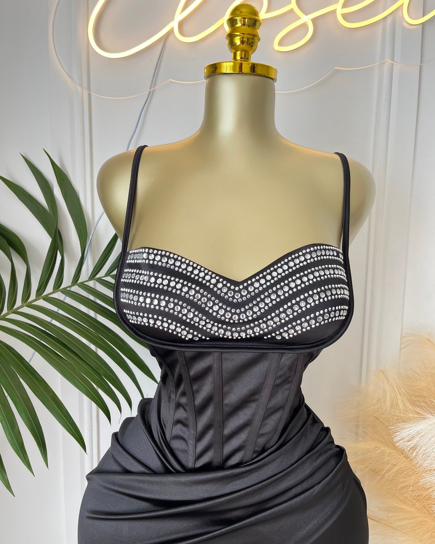 Step into a world of refined elegance with the Charlotte Midi Dress. Perfect for cocktails and evening events, this dress combines a sleek silhouette with subtle shimmer for a truly captivating look.