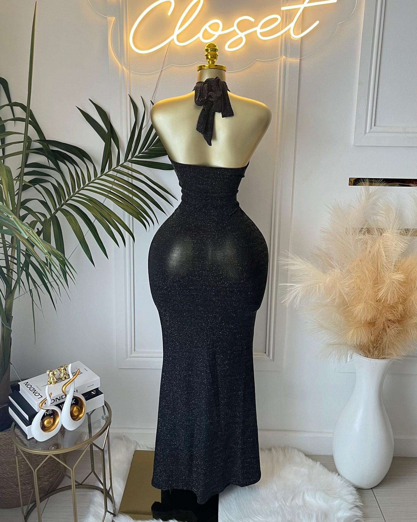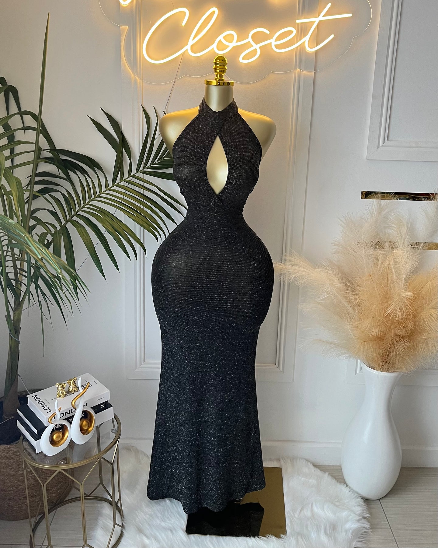 • Style: Glittery Maxi Dress with Cutout
