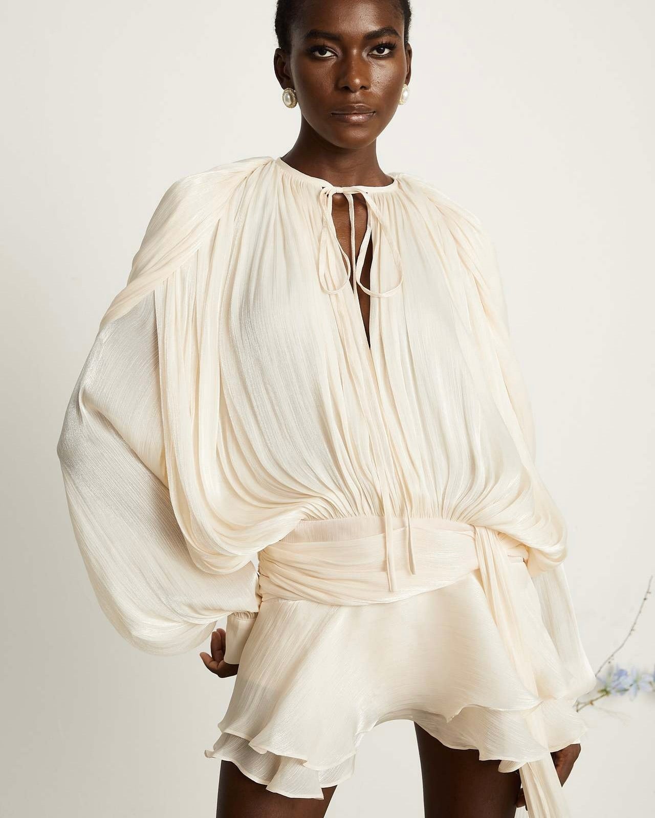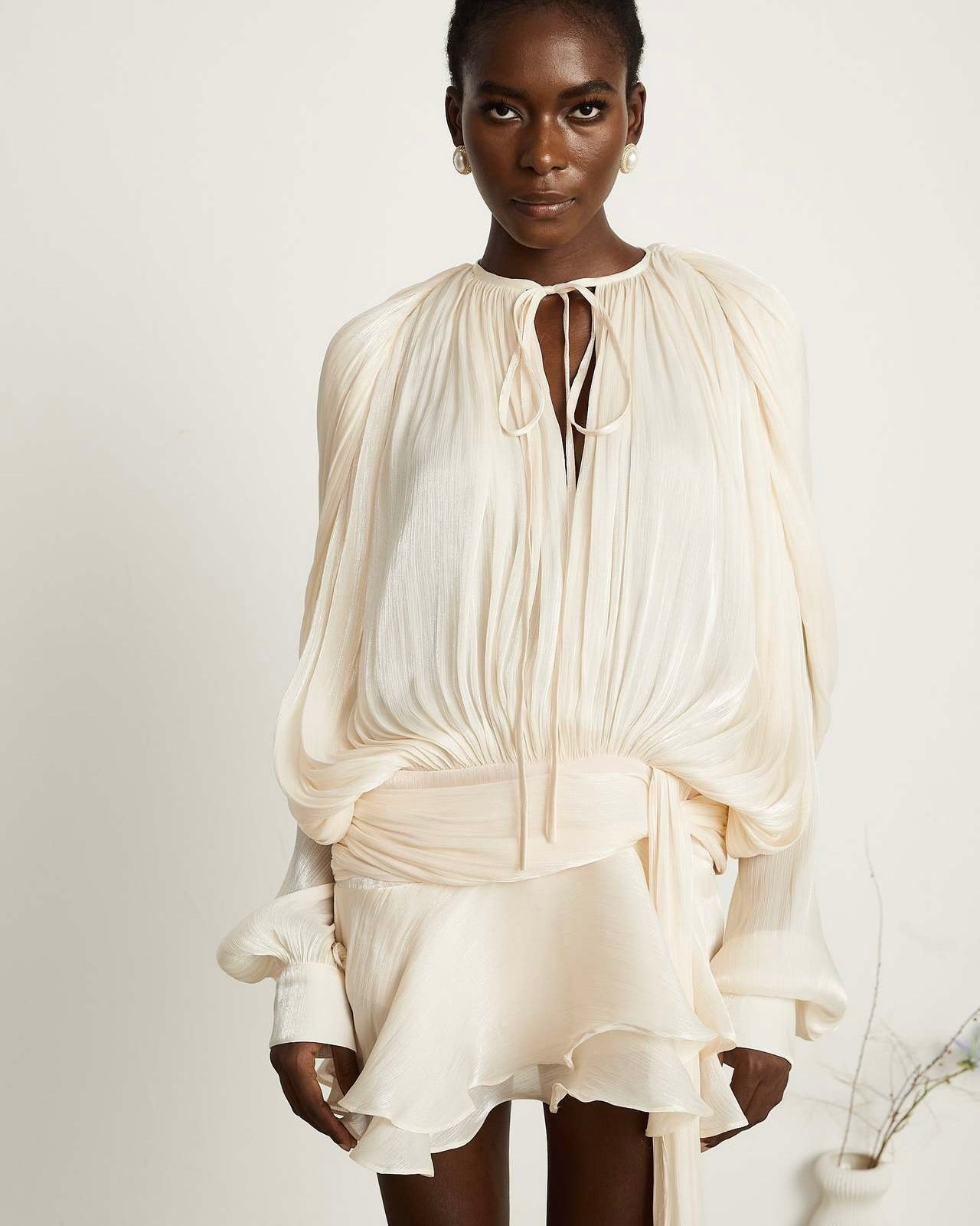 Yoni Satin Ruffle Mini Dress is your soft satin mini with floaty sleeves and a romantic ruffle hem—perfect for brunch dates, celebrations, and feminine glam moments.