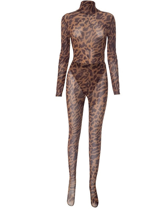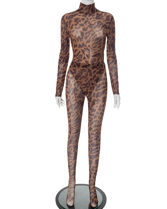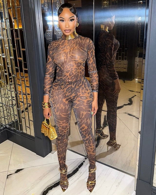 The Manon Two-Piece Set is fierce, sleek, and made for statement moments. Featuring a sheer animal print mesh top and matching high-waist leggings, this bold set embodies confidence and luxury — perfect for nights out or upscale events.