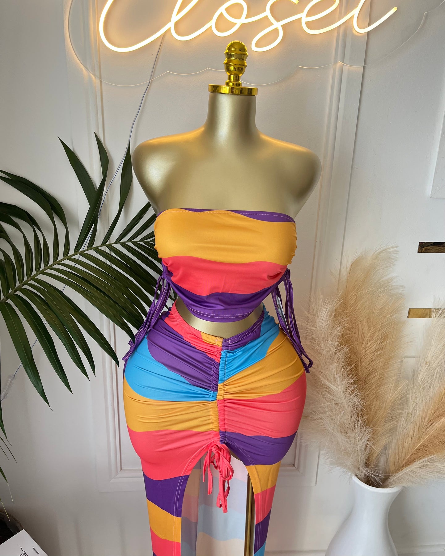 Introducing Yaz, the perfect two-piece skirt suit for a sexy and sophisticated look. With a pleated chest and stylish strappy design, this suit is sure to make a statement. Elevate your wardrobe with this must-have piece that combines fashion and functionality.