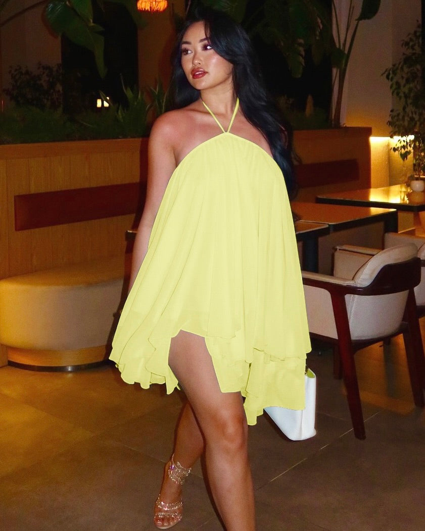 The Cleora Lime Halter Mini Dress is playful, flowy, and made to turn heads. Perfect for summer birthdays, vacation nights, beach dinners, and girls’ night out, this lightweight silhouette brings effortless glam energy.