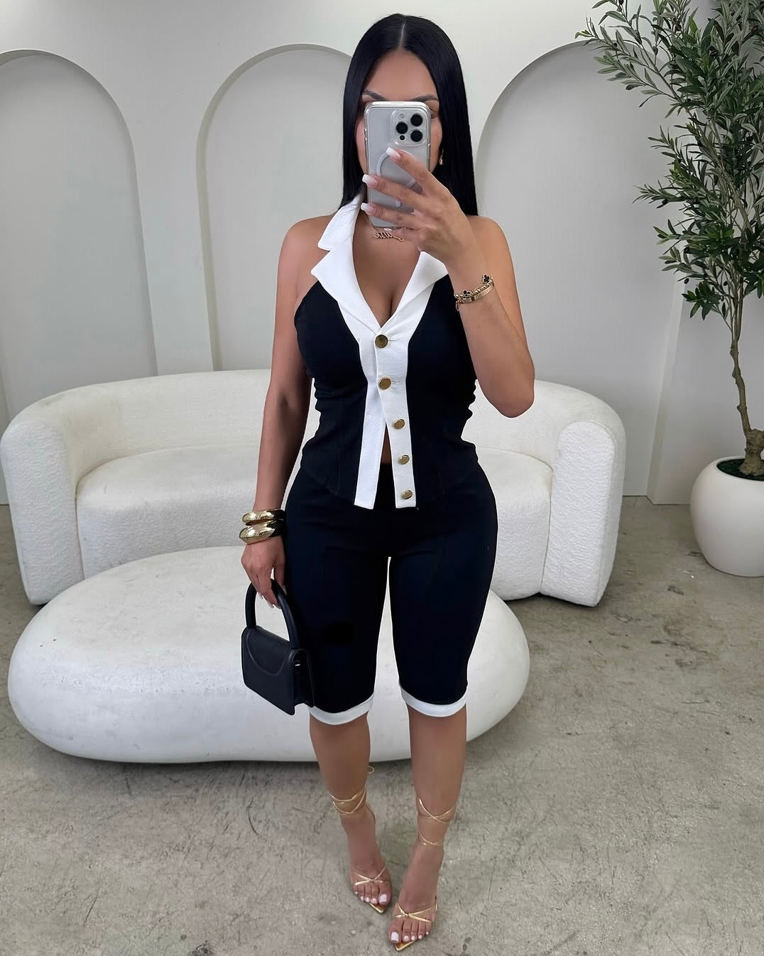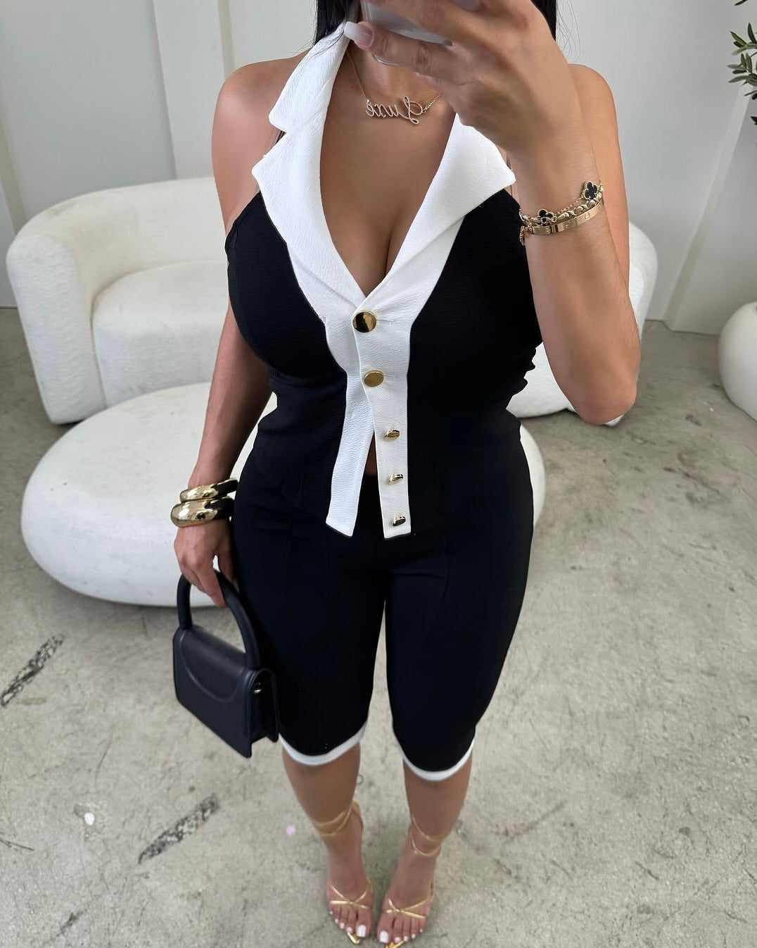 The Kaylee Contrast Collar Co-Ord Set is giving classy with a touch of sexy. Designed with a tailored fit, statement collar detail, and gold button accents, this set hugs your curves while keeping it polished. Perfect for brunch, day outings, or when you want that clean, put-together look.