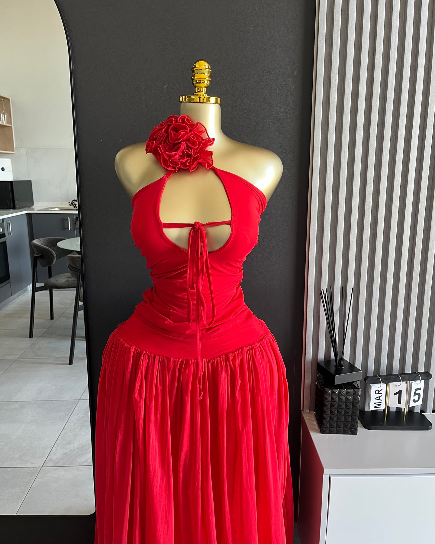 Scarlett Bloom Maxi Dress is your ultimate red ruffle mini dress—soft, flirty and made to steal the spotlight. With a statement bloom detail and cascading frills, it’s giving party outfit + birthday dress energy.