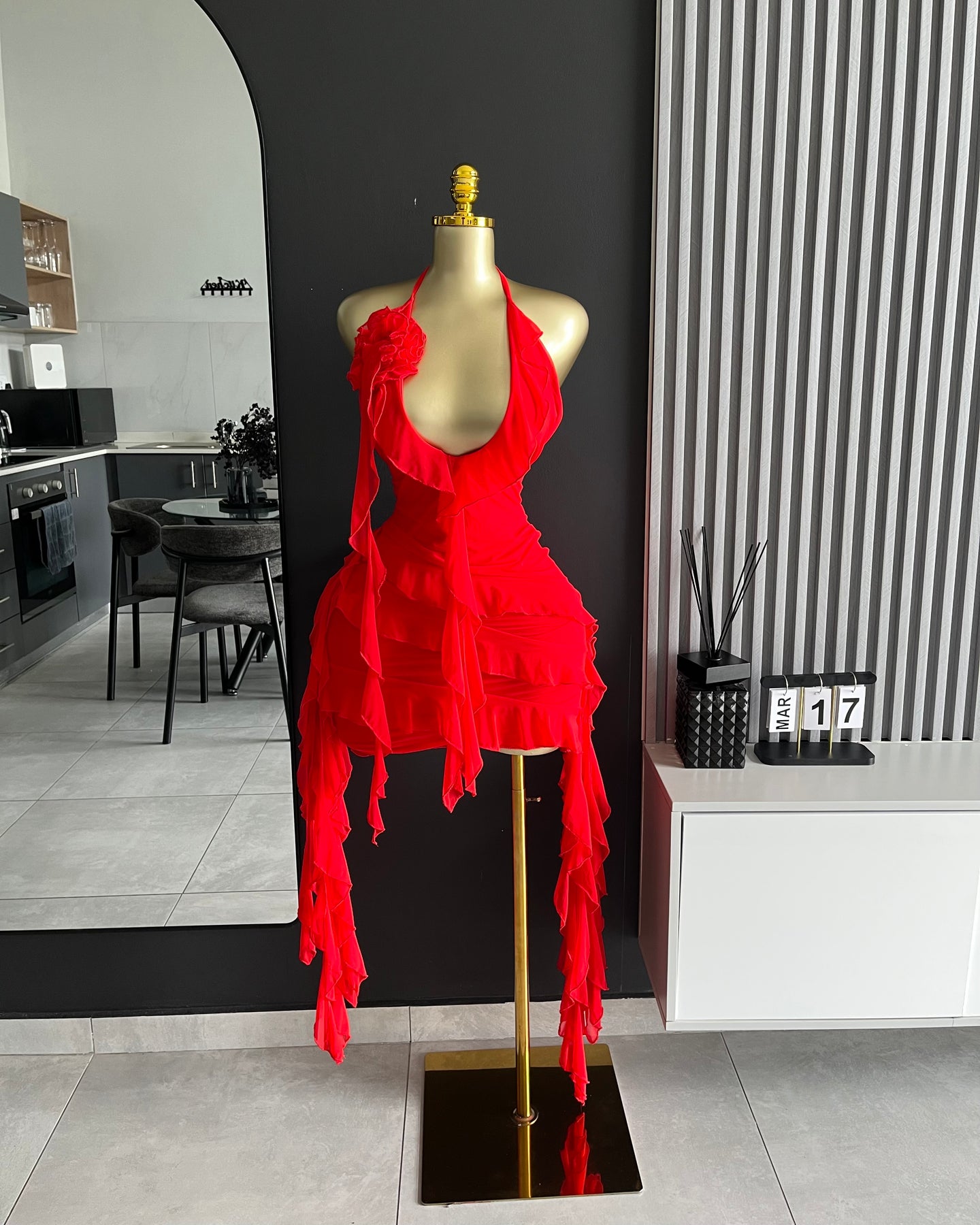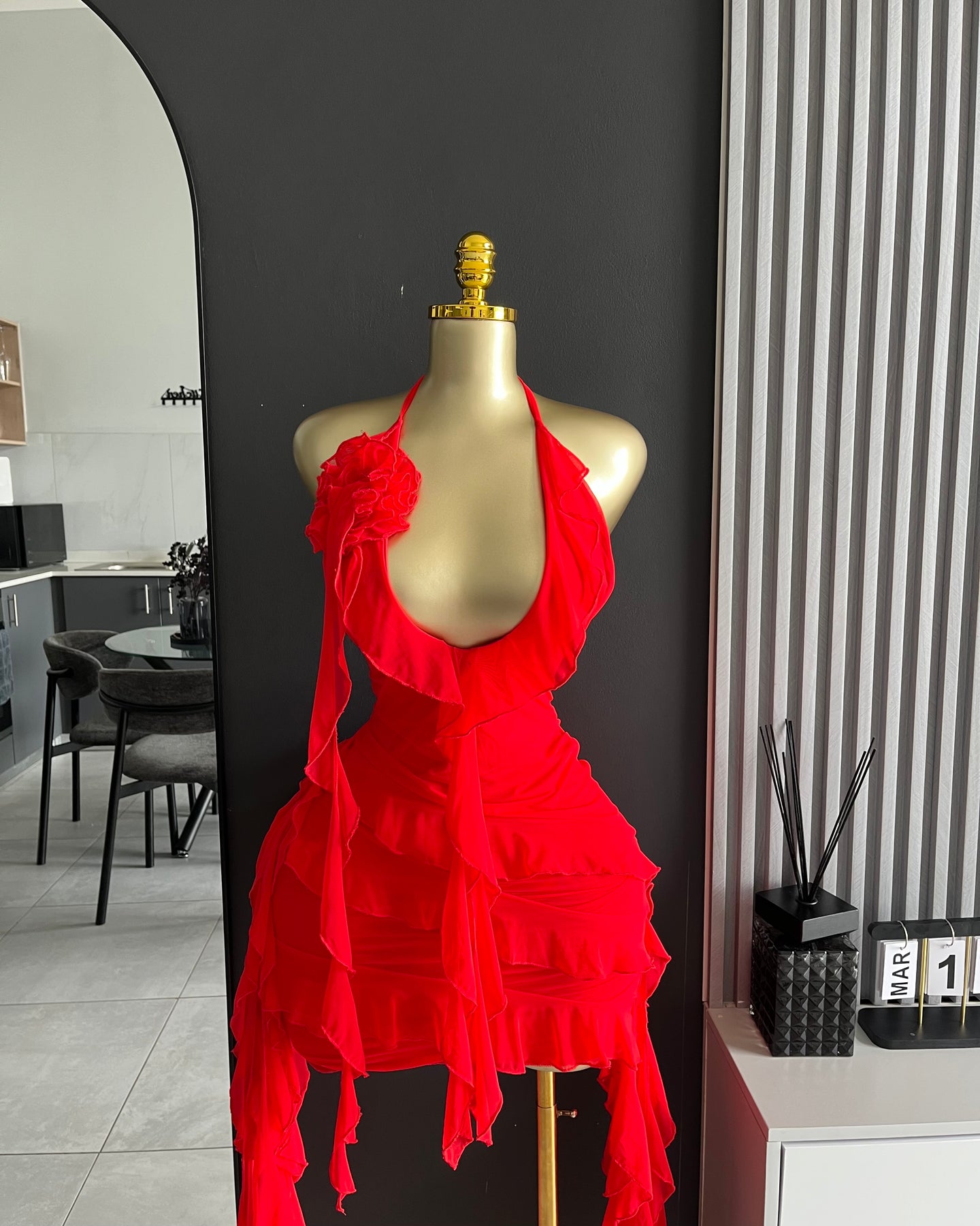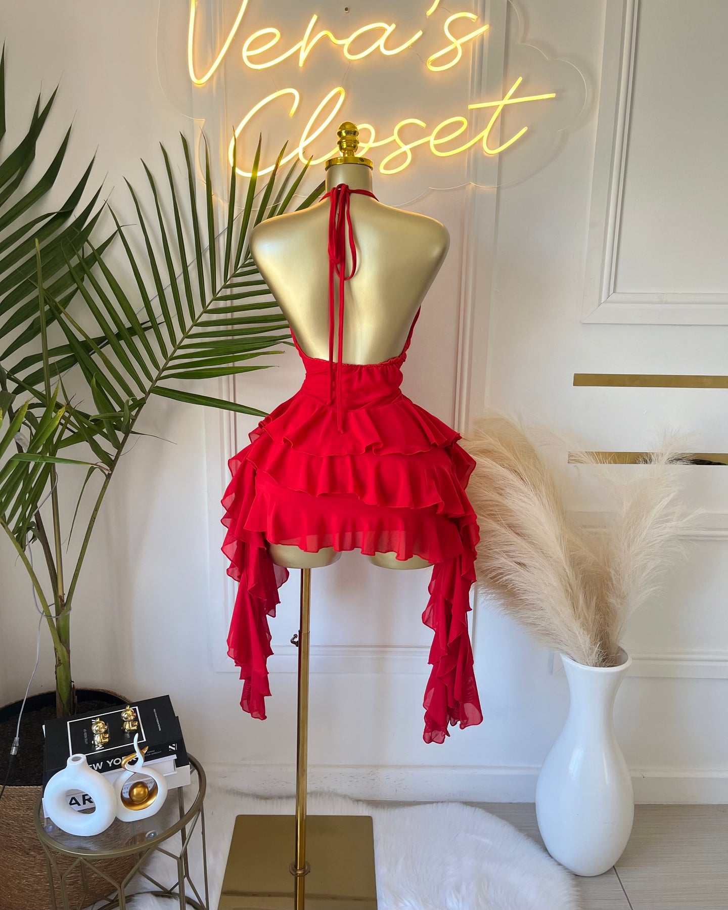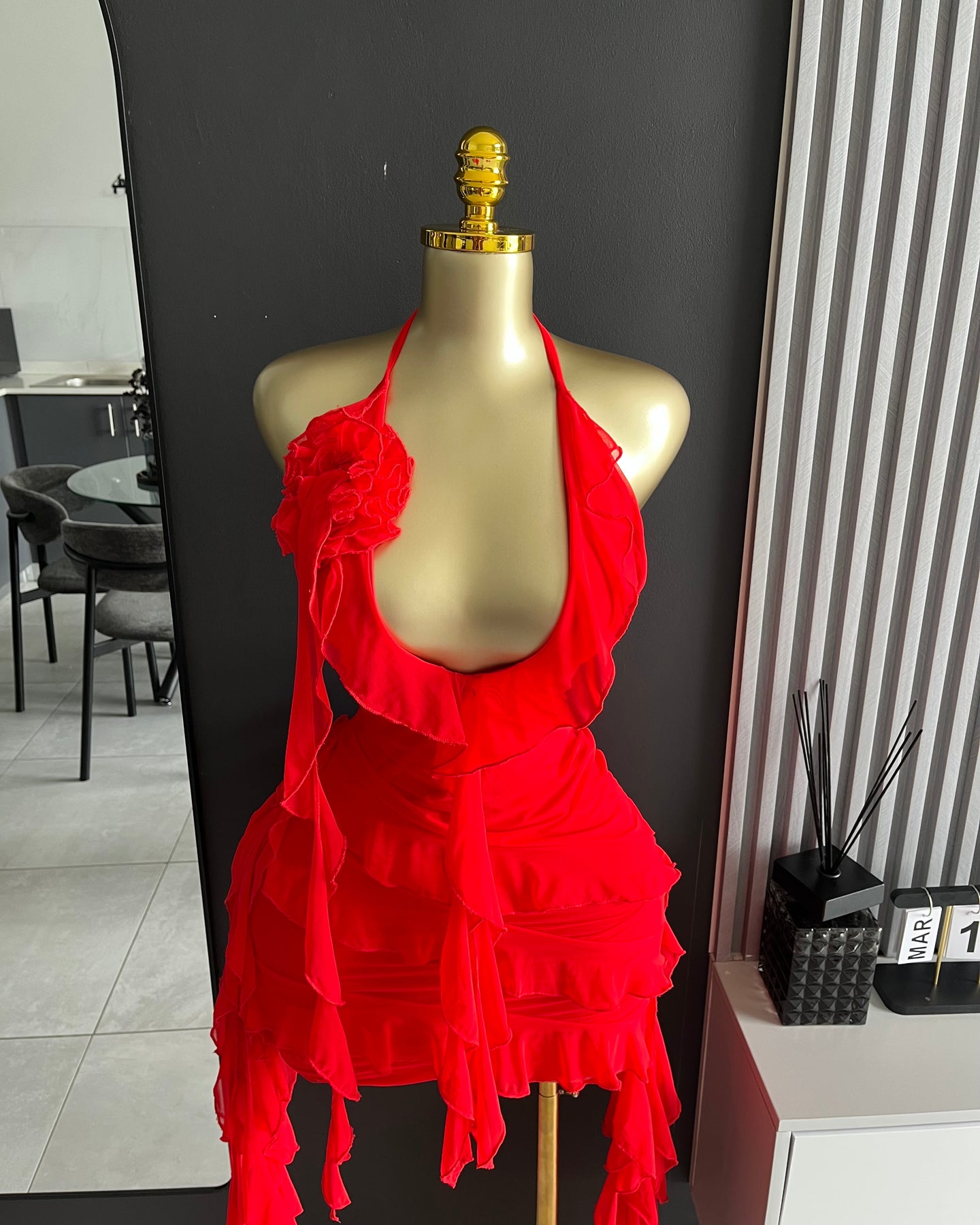 Scarlett Bloom Mini Dress is your ultimate red ruffle mini dress—soft, flirty and made to steal the spotlight. With a statement bloom detail and cascading frills, it’s giving party outfit + birthday dress energy.