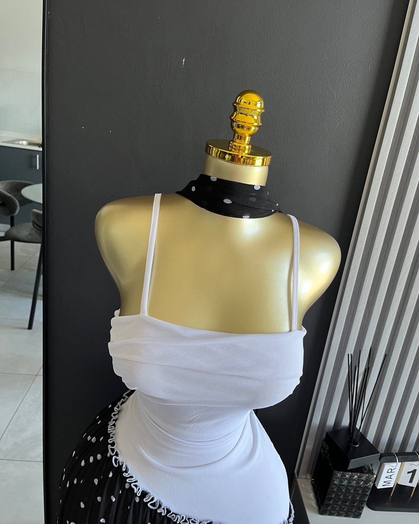 The Elowen Pleated Contrast Maxi Dress blends minimal elegance with soft drama. Designed with a sleek black fitted bodice and a flowing pleated blush skirt, this contrast maxi dress creates a flattering, elongated silhouette perfect for elevated evenings and special occasions.